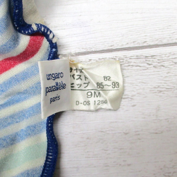 E6410★使用感あり 水着 ワンピース レディース 9M レトロ 斜めストライプ ウンガロ ブルー系 ツルスベ 水泳 スイム プール ビーチ 海