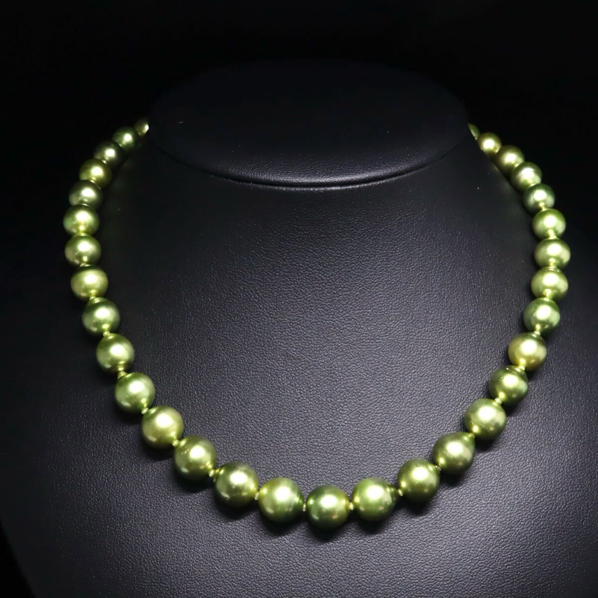 約8.0-10.5mm珠■本真珠ネックレス■A 約52.2g 約43cm pearl パール necklace jewelry ジュエリー ピスタチオ DB0/DC0 U885