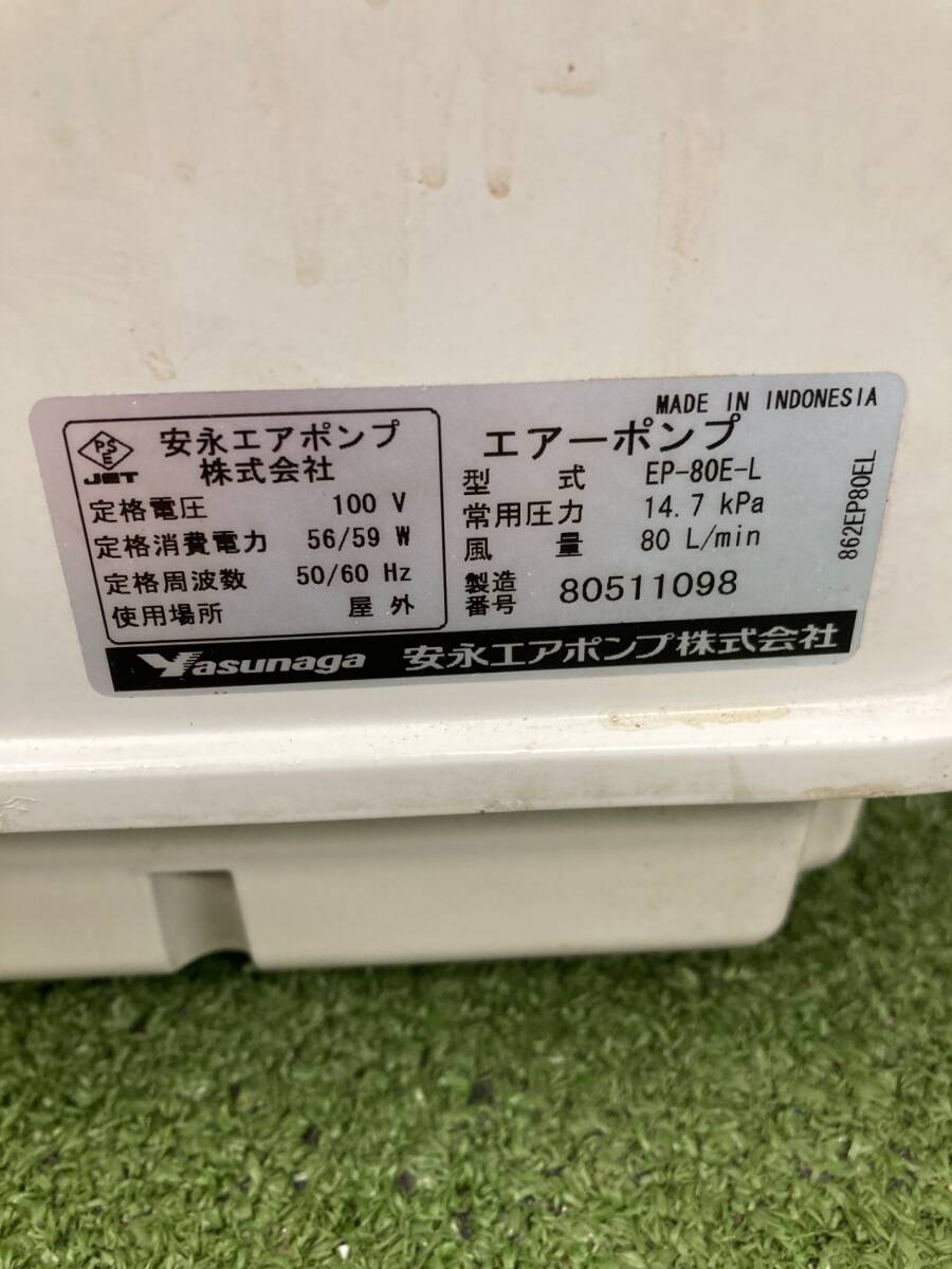 【中古品】【0926】安永エアーポンプ 電磁式エアーポンプ EPシリーズ EP-80E-L IT949UZNYWUS