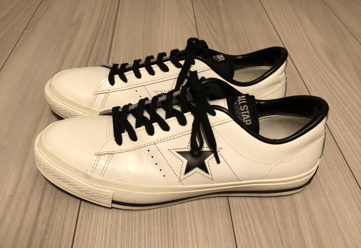 1円〜 美品 CONVERSE ワンスター J レザー 28cm US9.5 日本製 白 黒 ホワイト ブラック コンバース ローカット