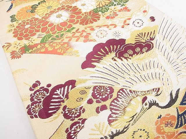 Product name: 平和屋着物◎アンティーク 大正ロマン 丸帯 飛鶴吉祥花文 金糸 逸品 DAAC3295mz