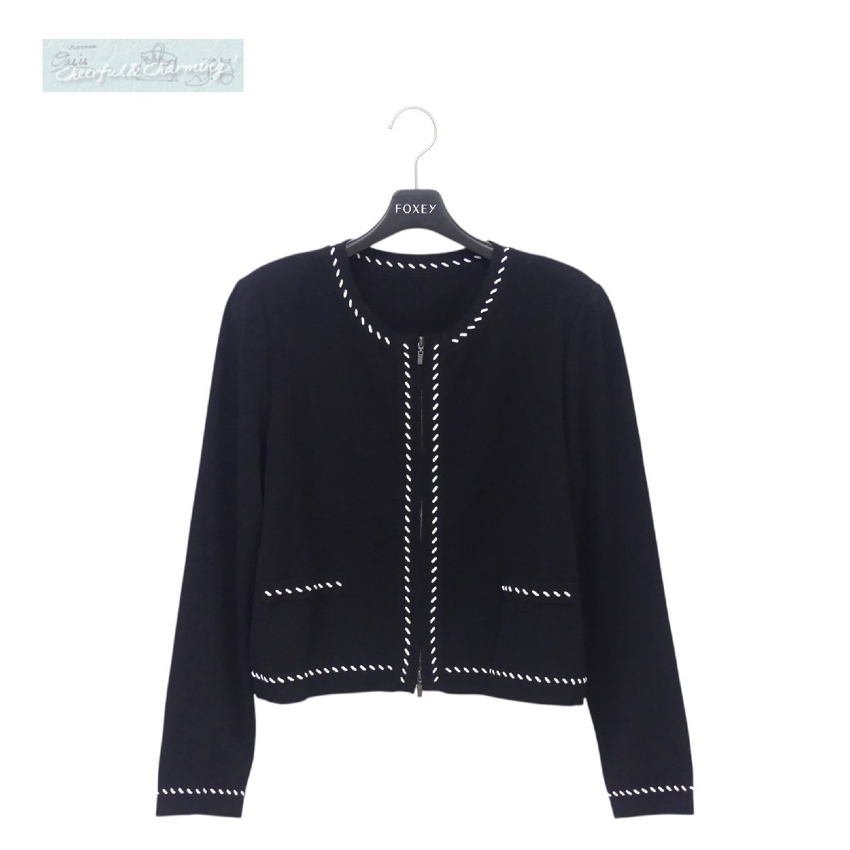 Product name: 未使用 FOXEY ニットジャケット レオニージャケット 40 ブラック レーヨンBLEND ステッチディティール カーディガン '25年増産 44397