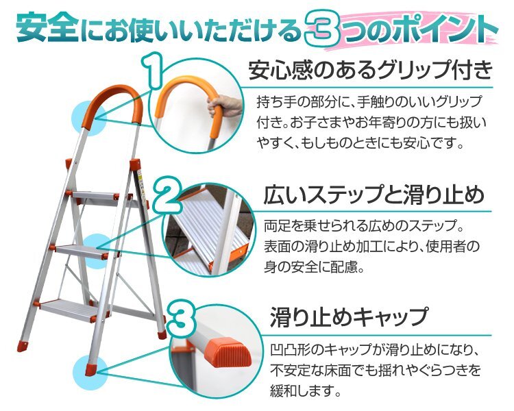 Product name: 脚立 はしご 4段 アルミ 踏み台 折りたたみ おしゃれ 軽量 折りたたみ脚立 ステップラダー 雪下ろし 踏み台 ステップ台 家庭用 オレンジ