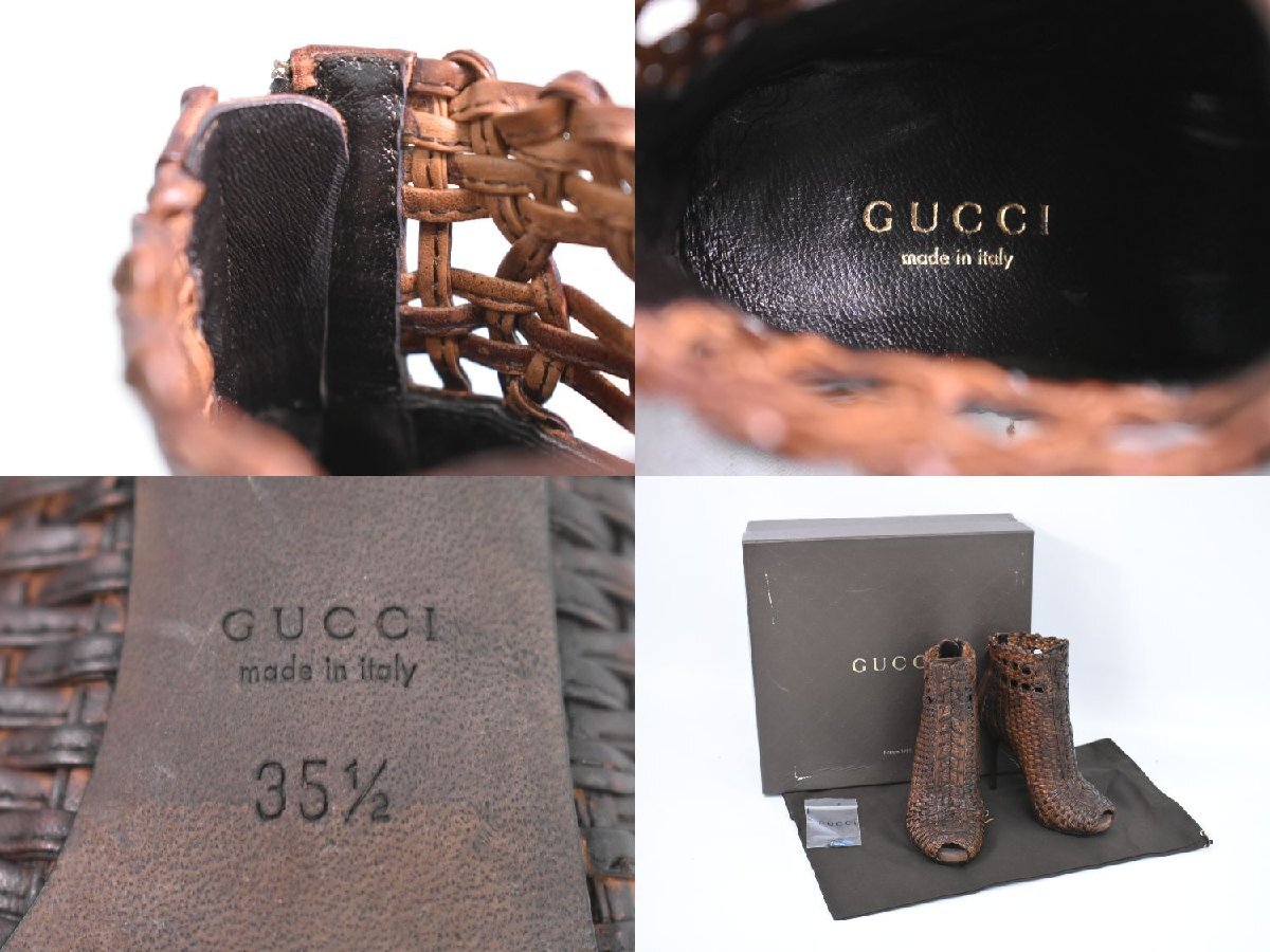 【1スタ】 グッチ GUCCI オープントゥ ブーティ ブーツ ハイヒール 35H レザー ブラウン