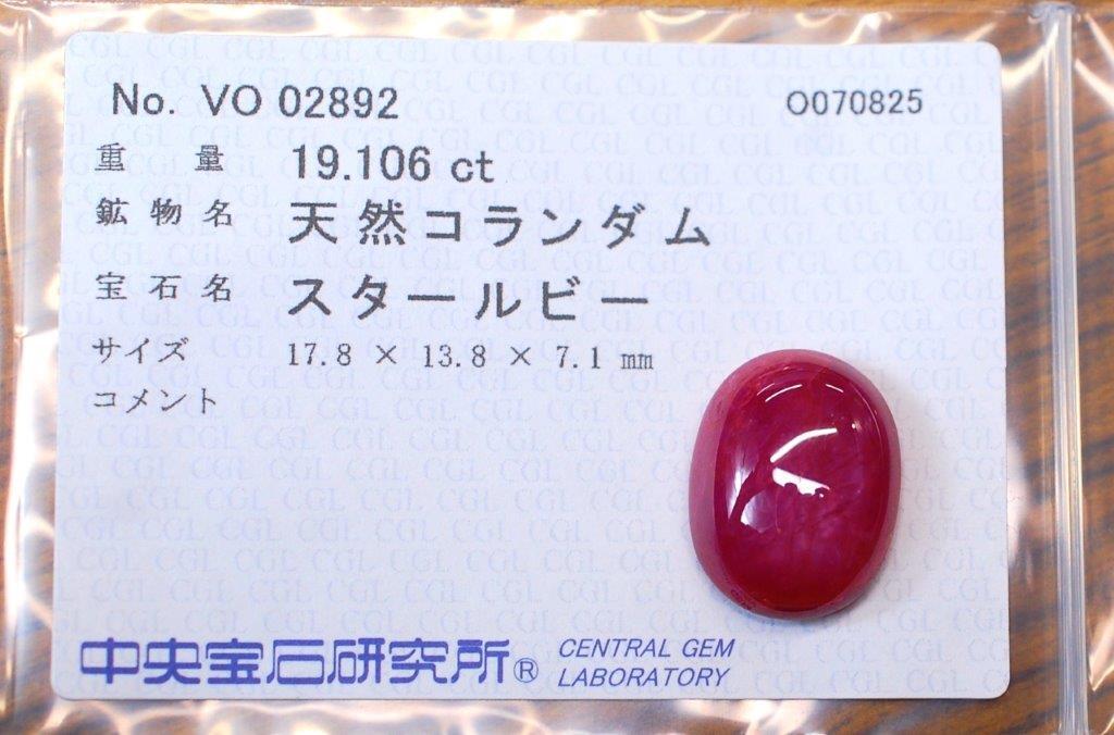 天然スタールビー  ルース  19.106ct  CGLソーティング付き