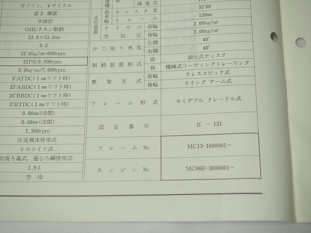 Product name: レブル CA250T R 追補版 サービスマニュアル MC13 配線図有り 平成6年1月発行