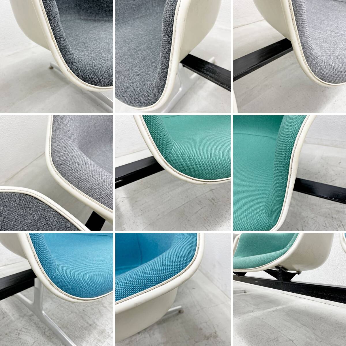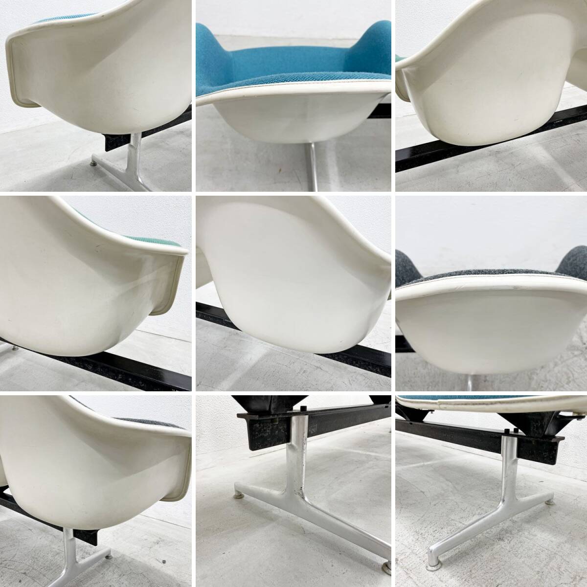 〓 ハーマンミラー Herman Miller ビンテージ エアポートベンチ タンデムシート 4連 アームシェル 2nd ファブリック 新品張替え済 D