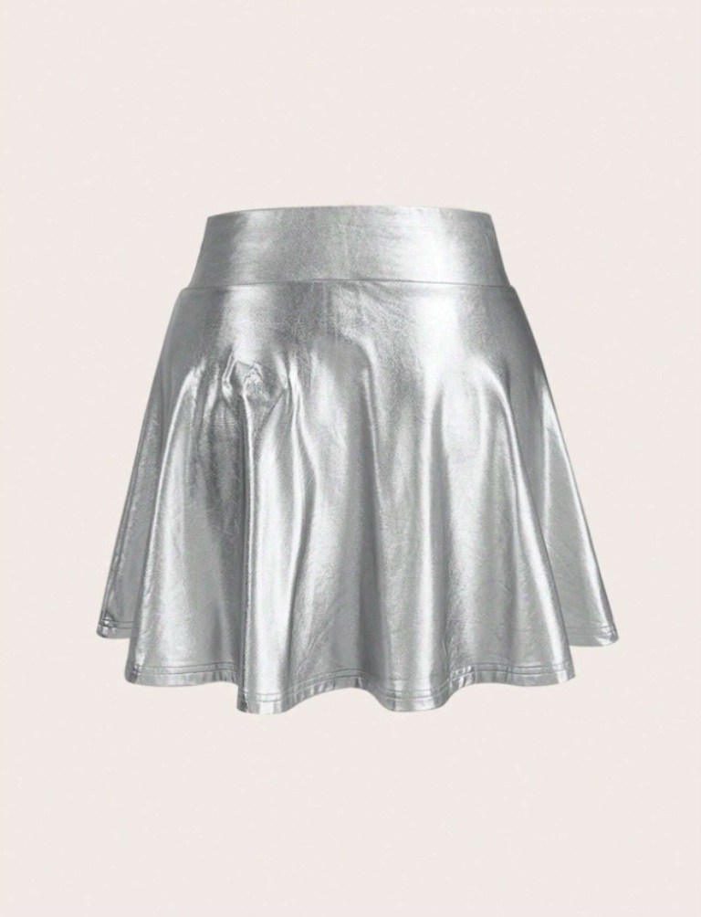 Product name: PUハイウエストシルバーミニスカート 伸縮素材 大きいサイズ
