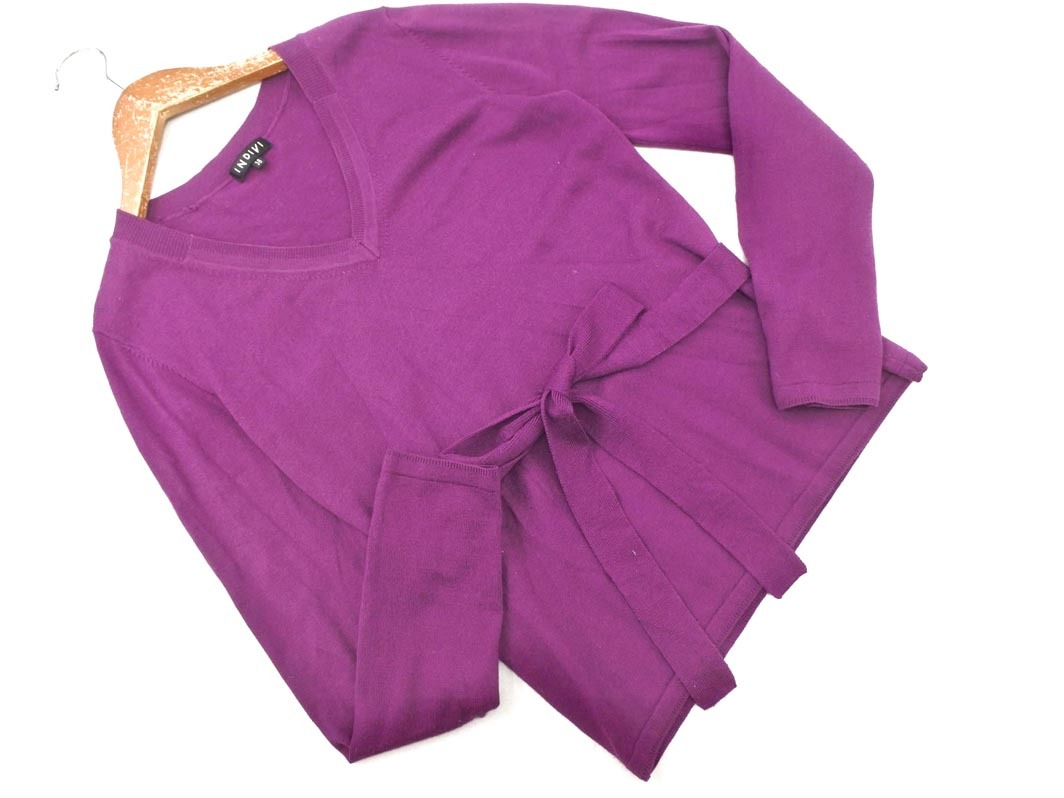 Product name: INDIVI インディヴィ ウール混 リボン付き ニット セーター size38/紫 ◇■ ☆ fhc8 レディース