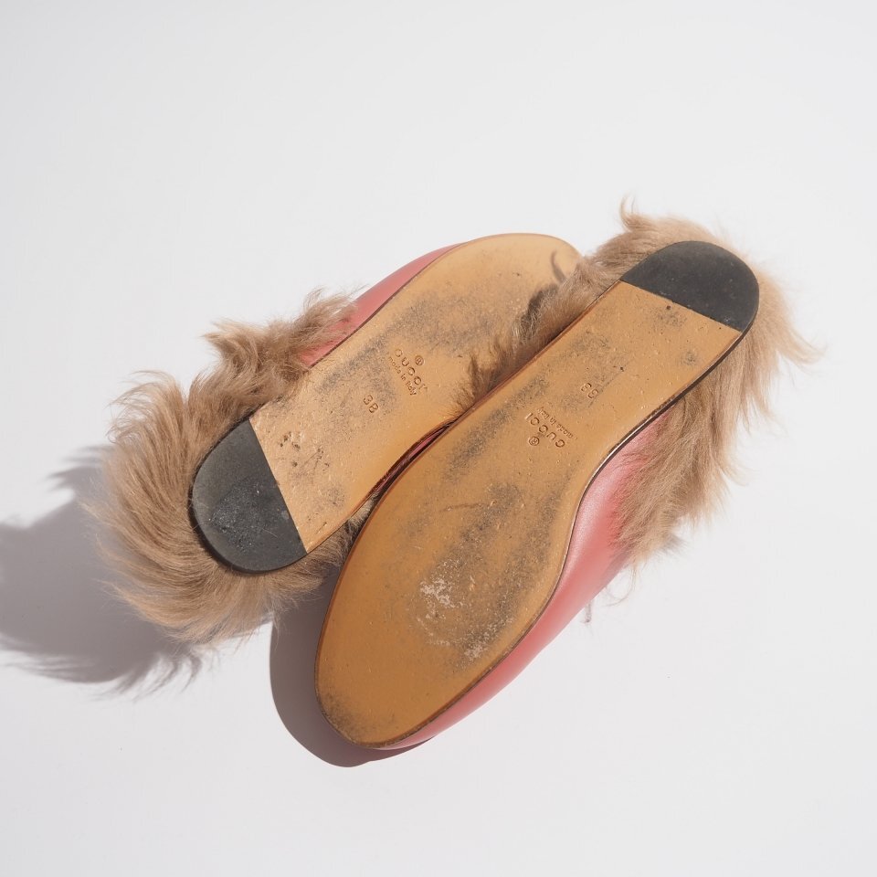 P7569P ▼GUCCI グッチ▼ プリンスタウン ファー ホースビット レザー スリッパ ピンク 38/24cm シューズ サンダル 秋冬 rb mks