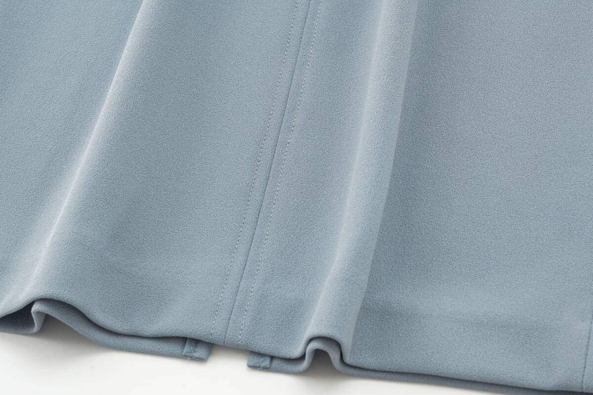 明るくややくすんだブルーグレーのカラーが目を引く、品のある一着。