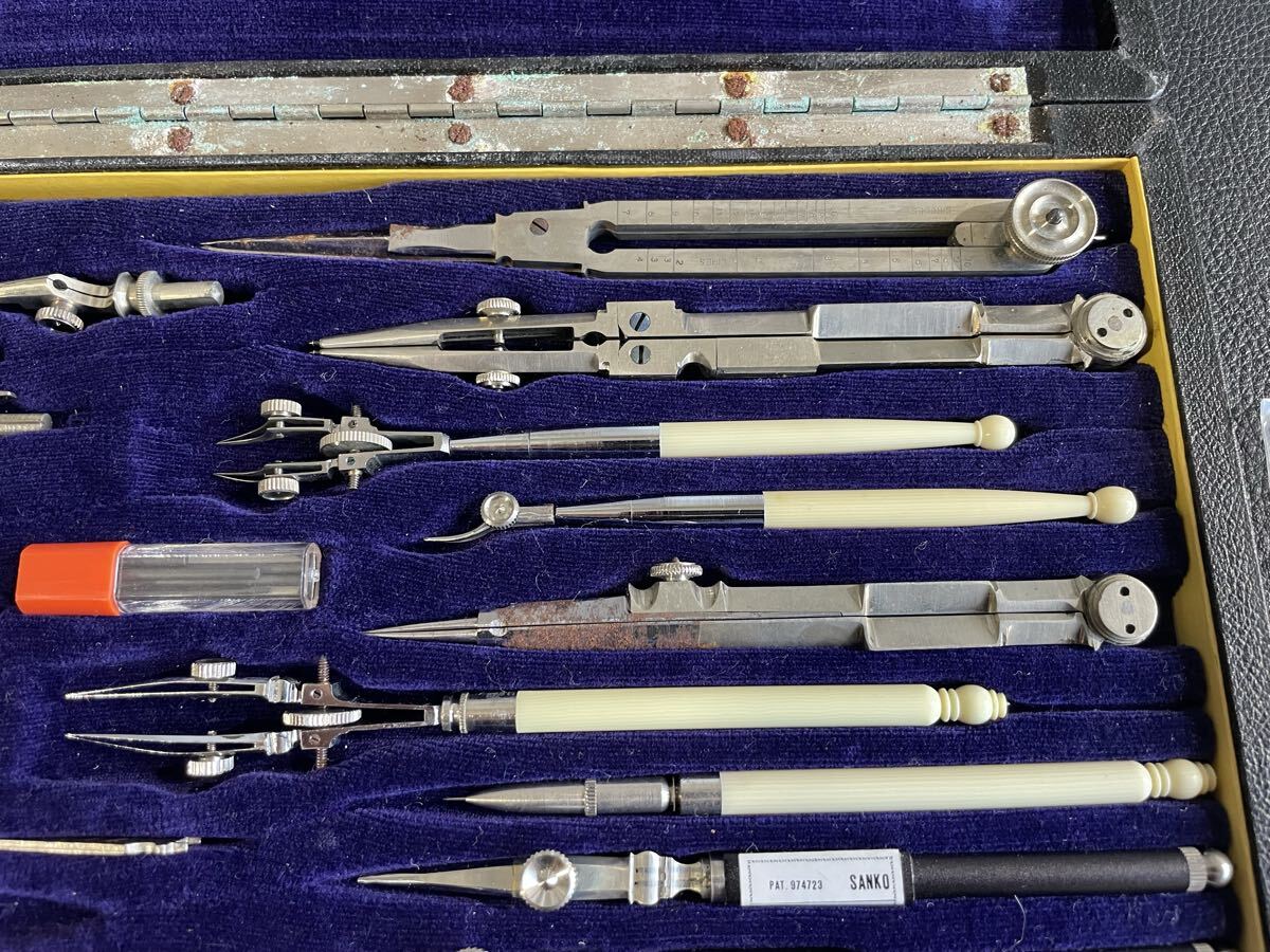 レトロ☆東京三光 コンパスセット ケース付き 昭和レトロ コンパス 製図器 文房具 製図用 コンパス1個不足