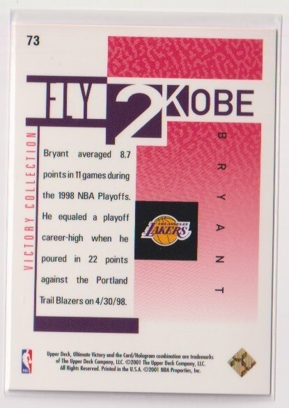 Product name: 2000-01 UD Ultimate Victory Kobe Bryant Fly 2 card #245/350