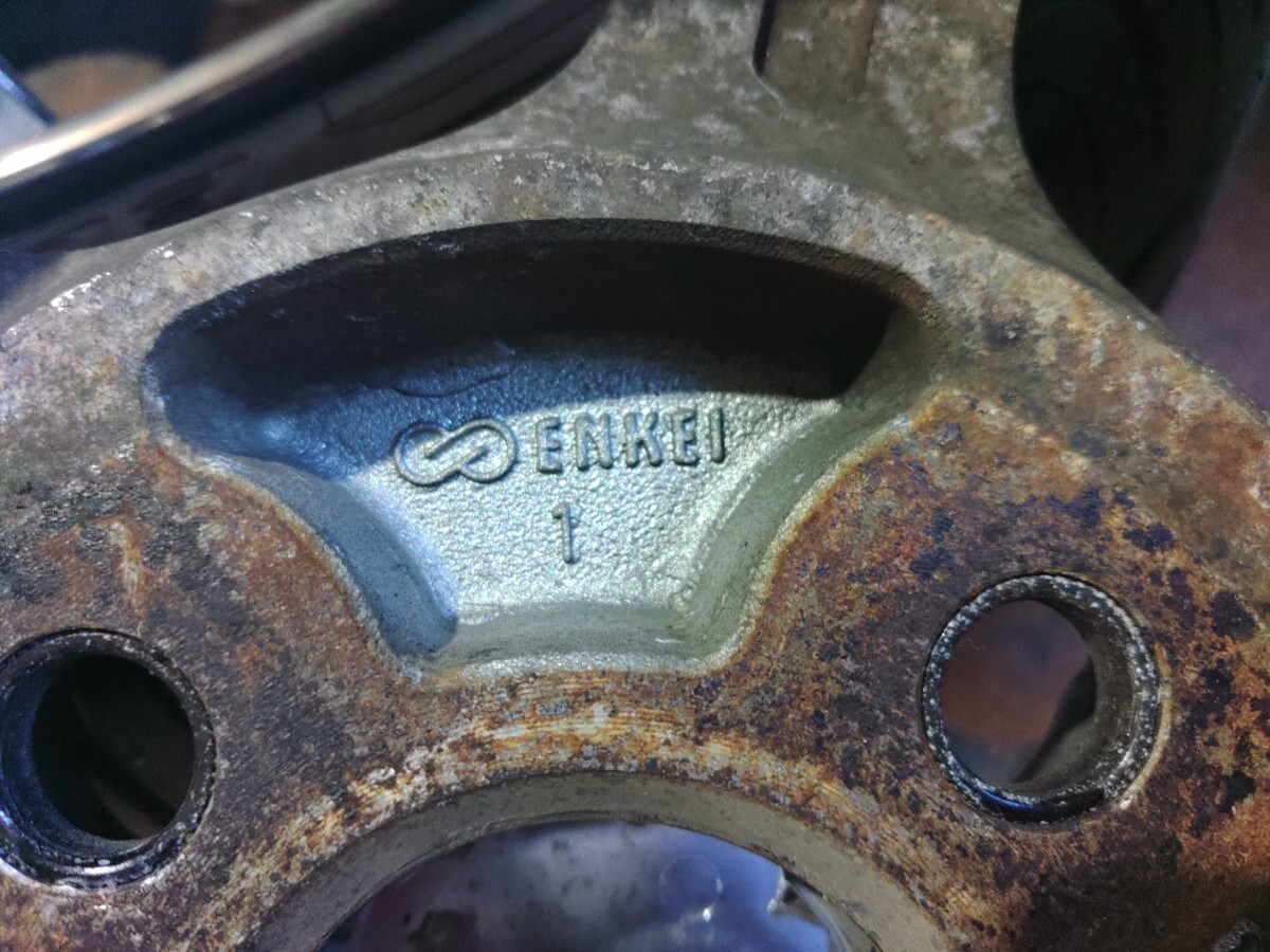 使用しなくなったので出品します。エンケイの中古アルミホイール4本タイヤ付きの出品です。状態は画像を参照してください。走行には問題ありません。タイヤ付きですが、画像のとおり若干のヒビがあります。真贋はこちらではわかりませんので画像から判断してください。発送は佐川着払いでお願いします。中古品ですのでノークレームノーリターンでお願いします。