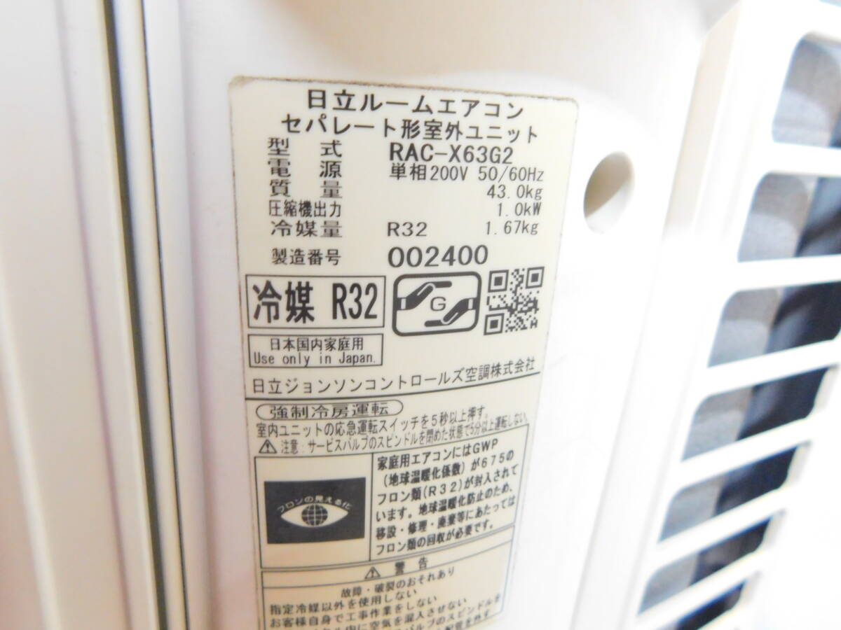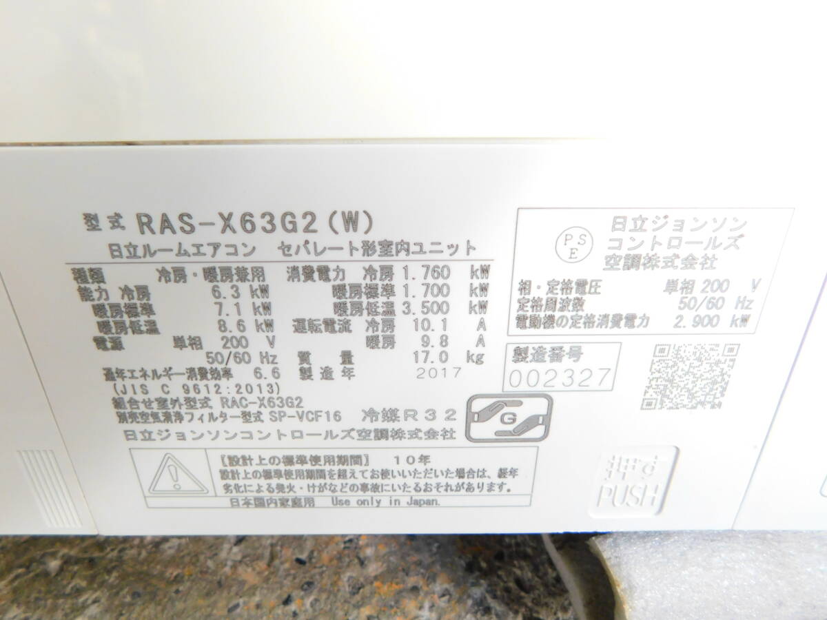 m955 HITACHI 日立 ステンレス・クリーン 白くまくん ルームエアコン RAS-X63G2(W) 6.3kW 主に20畳用 ~26畳 Xシリーズ くらしカメラAI