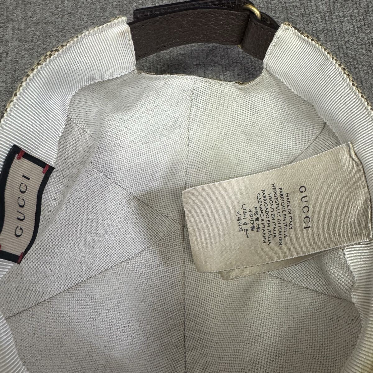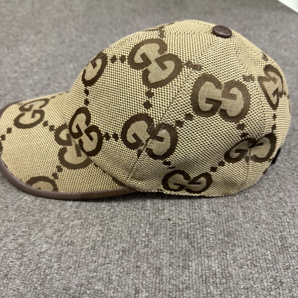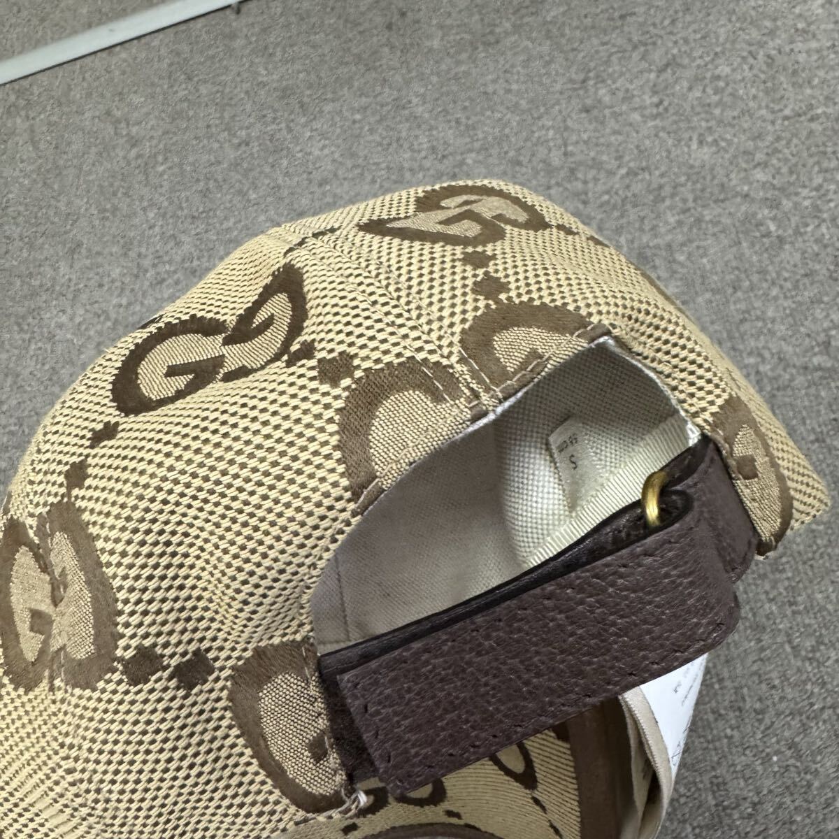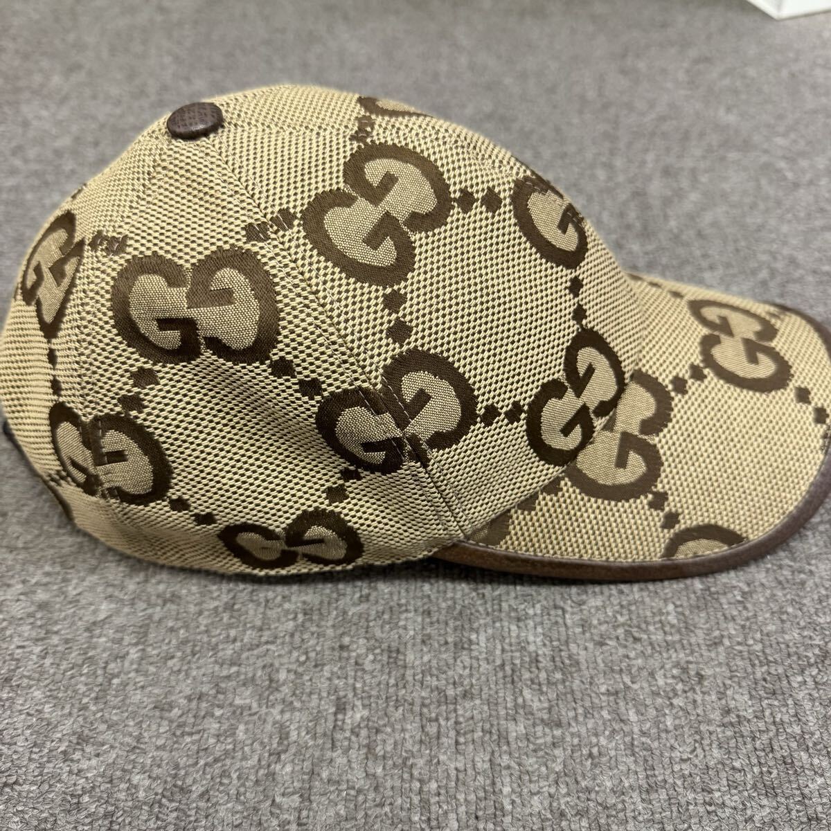 2『極美品・現行タグ』 GUCCI グッチ ベースボールキャップ キャップ 帽子 GGキャンバス ジャンボ GG レザー ブラウン 調節可能