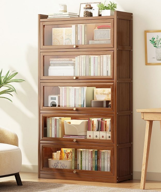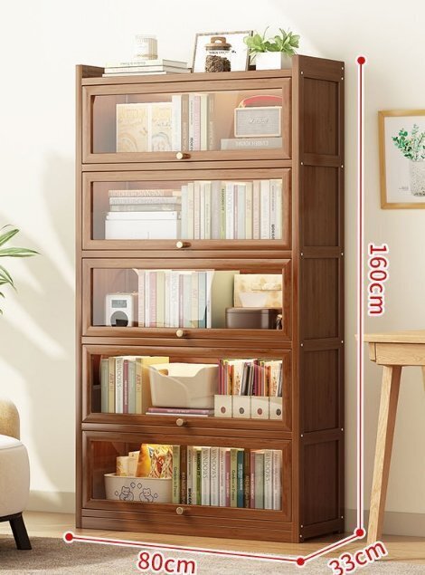 防塵本棚着床家庭用リビングドア付きショーケース収納棚本棚一体壁側