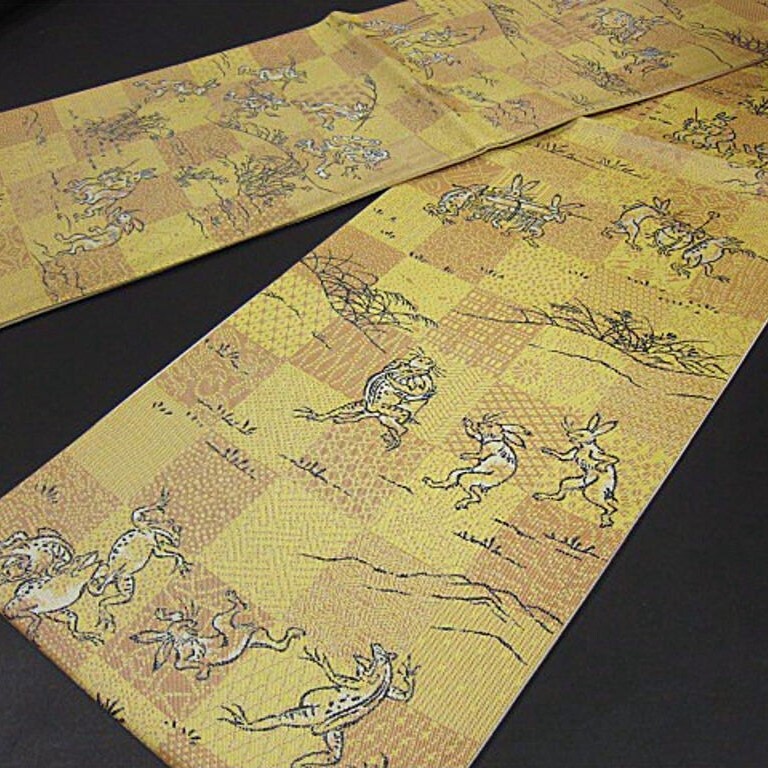 Product name:  新品未仕立 西陣織全通袋帯 紹把織 伊勢型百選 鳥獣人物戯画