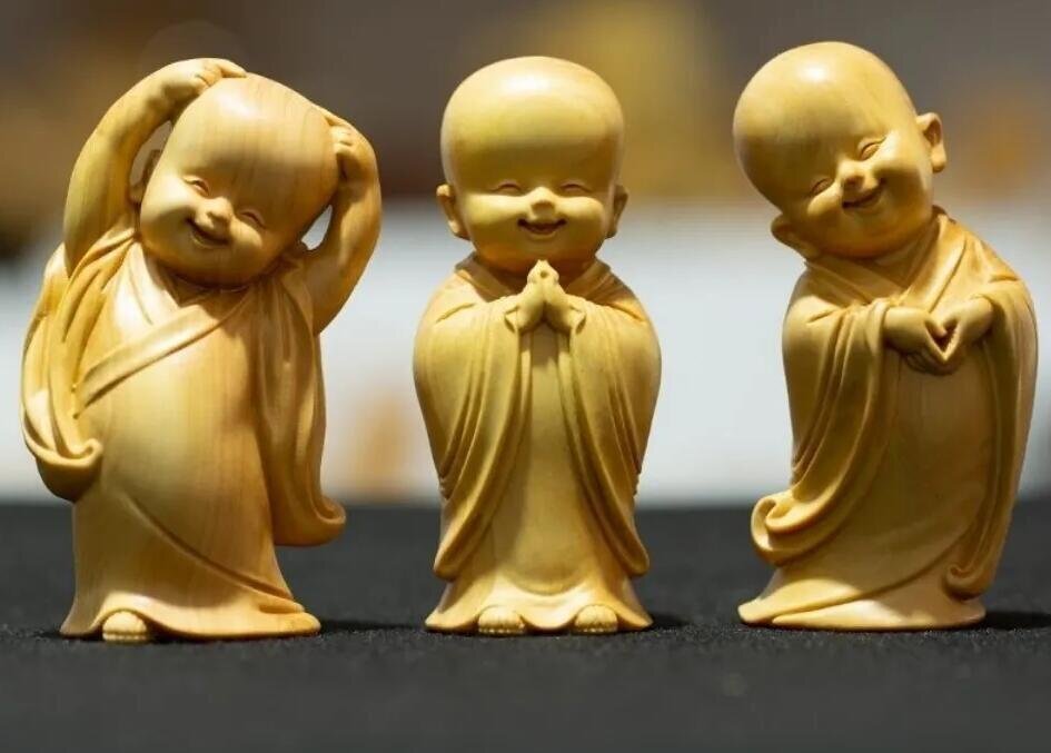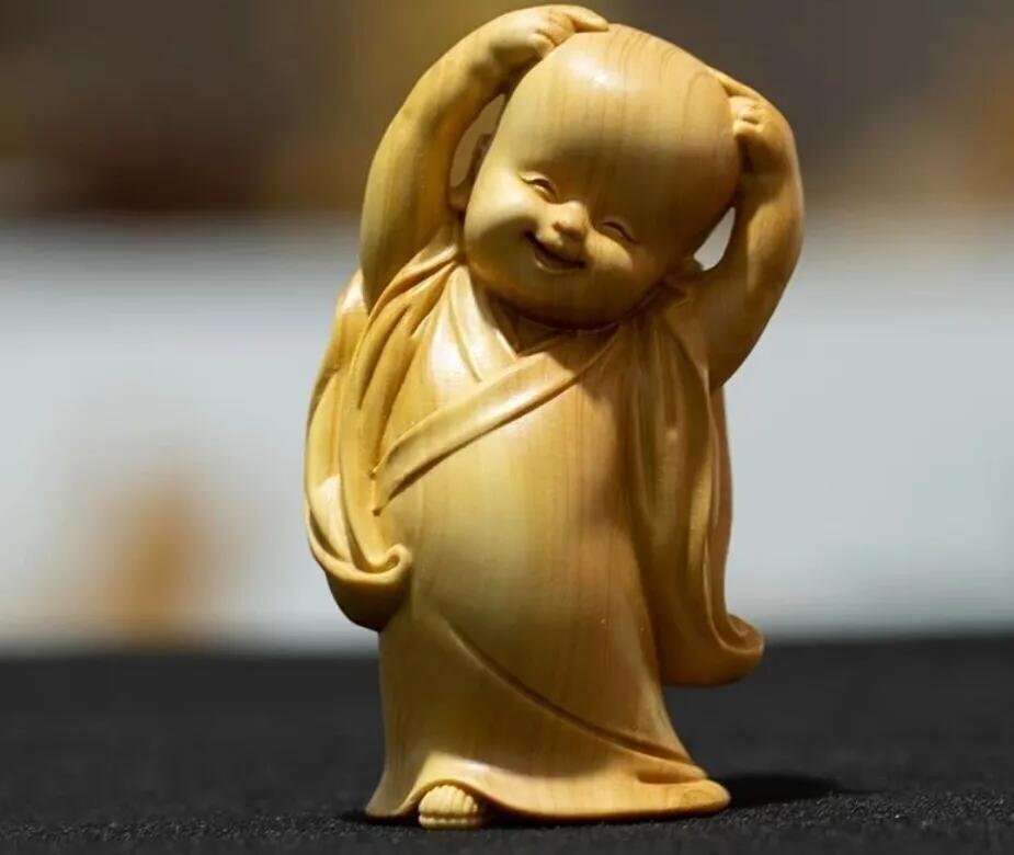 Product name: 人気新品★崖柏木彫り立ち小坊主3枚