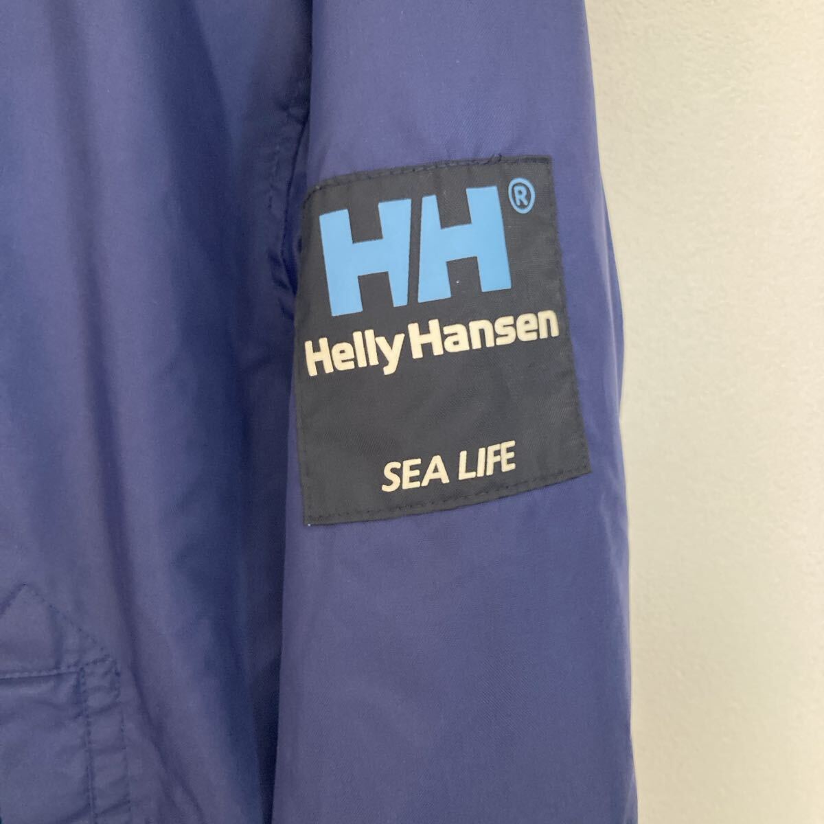 ネイビーのHelly Hansenジャケット、SEA LIFEロゴ付き、エクストララージサイズ。