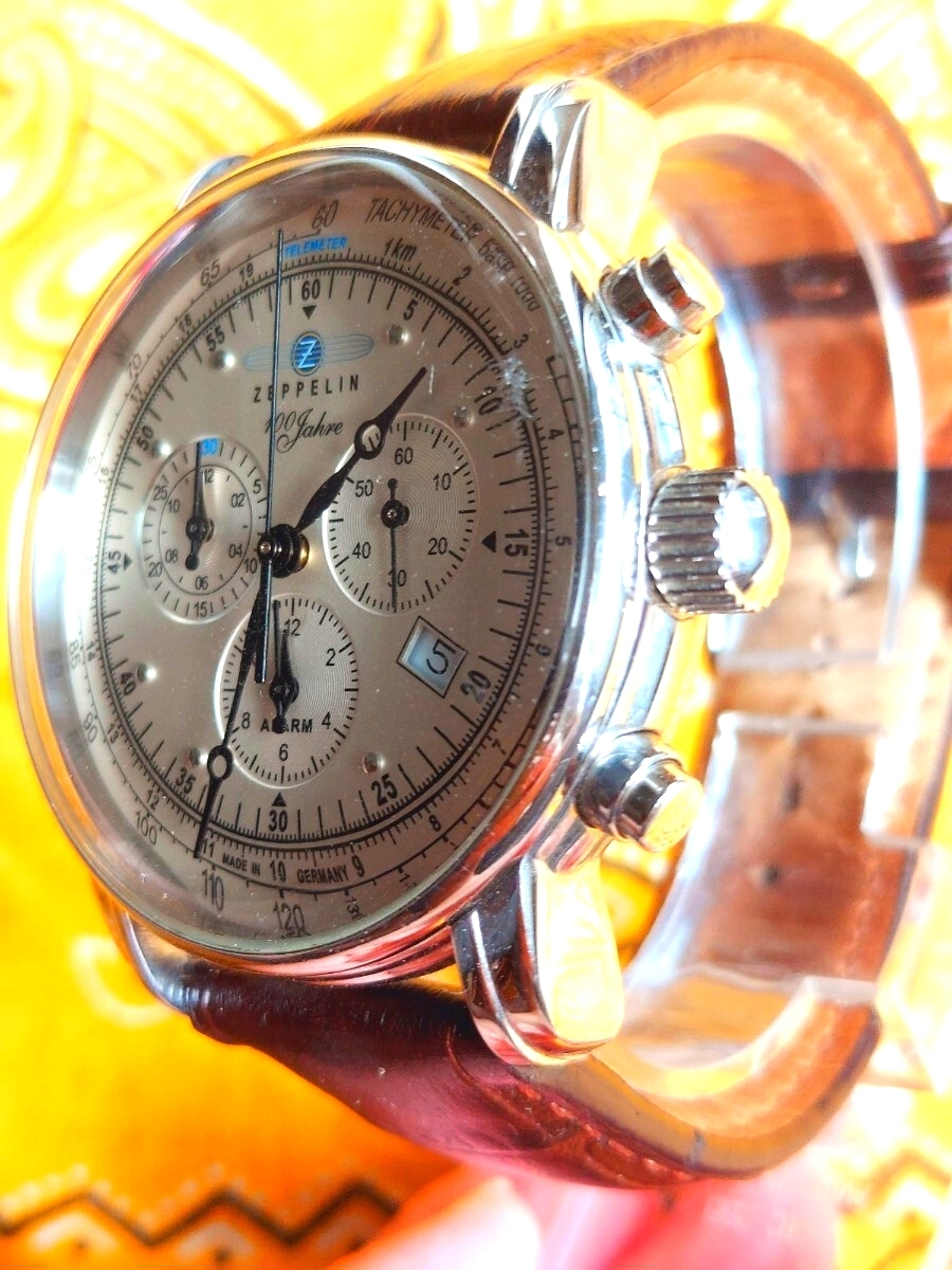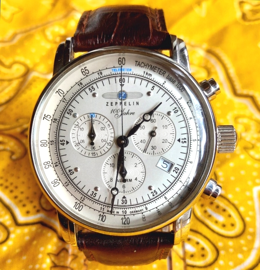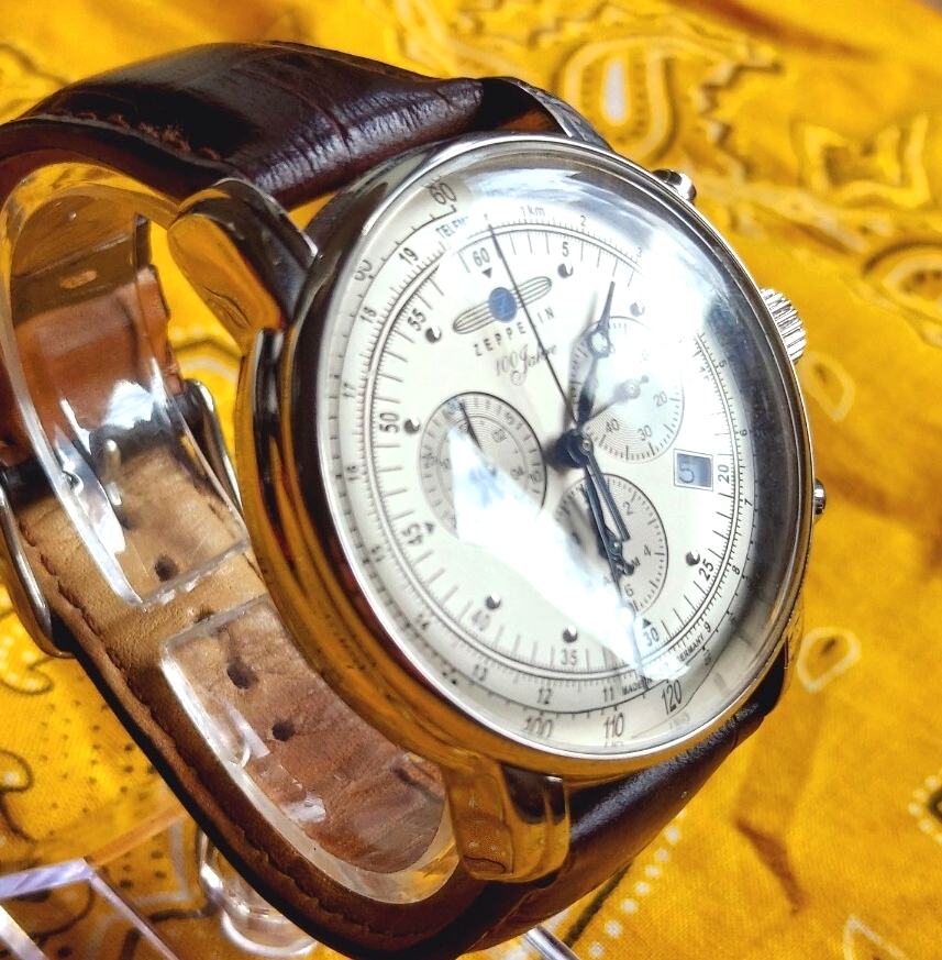 Zeppelin ツェッペリン 100周年記念 クロノグラフの稼働品です。ベルトの、尾鍵は純正です