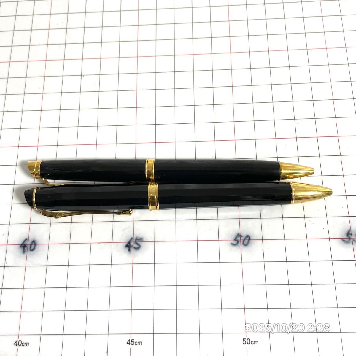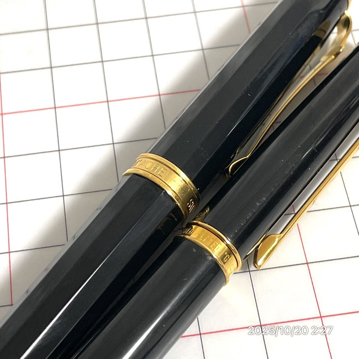1000円〜 美品 CARANd'ACHE カランダッシュ 中軸 太軸 ツイスト式 ブラック×ゴールド ボールペン 筆記具 2点セット