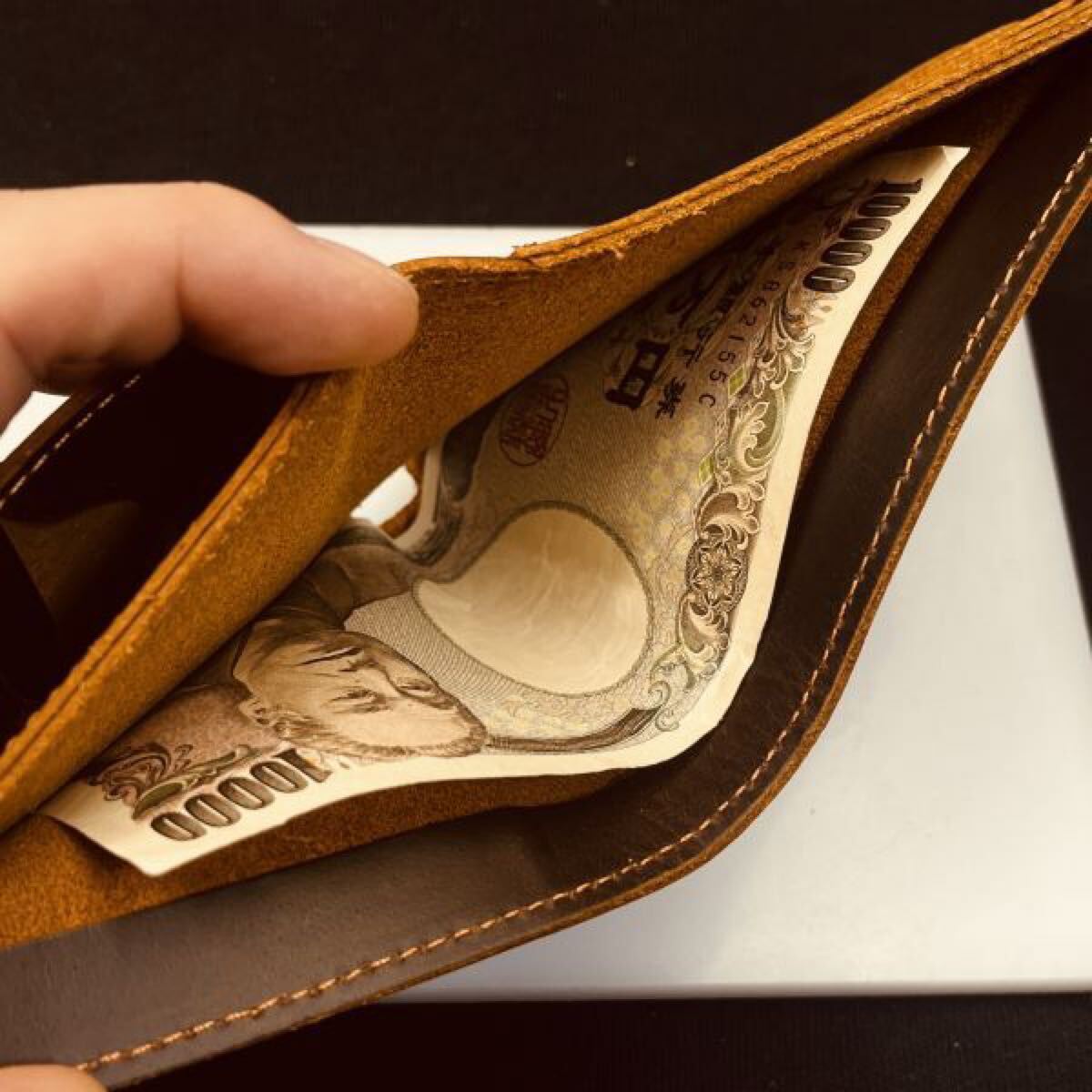 【経年変化を楽しめるマッドな質感のヌバックレザーを使用した二つ折り財布財布】