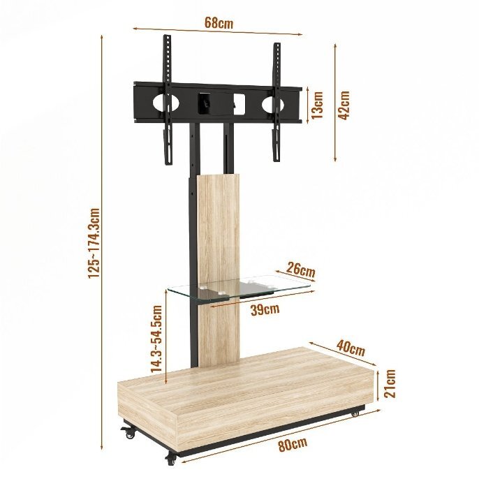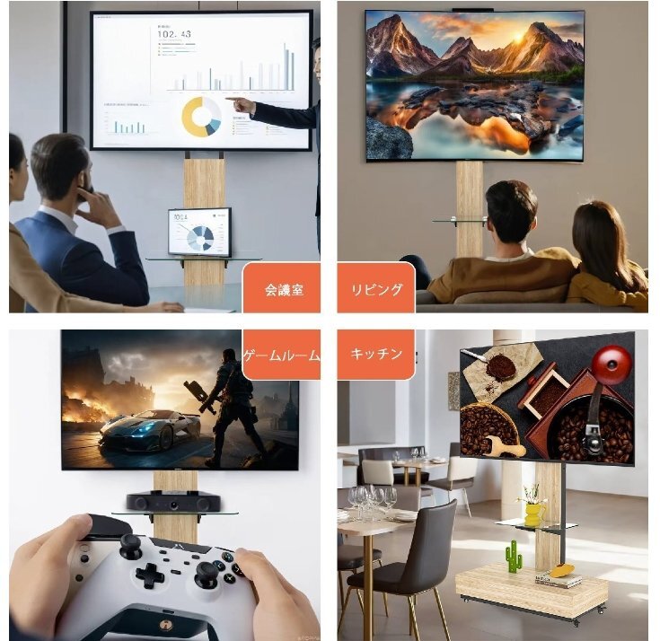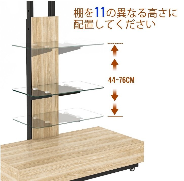 Product name: 【国内発送】引き出し付き 可動式TVスタンド 32-75インチ対応 高さ調整可能 木目&ガラス製 キャスター付き リビング・寝室・オフィス用