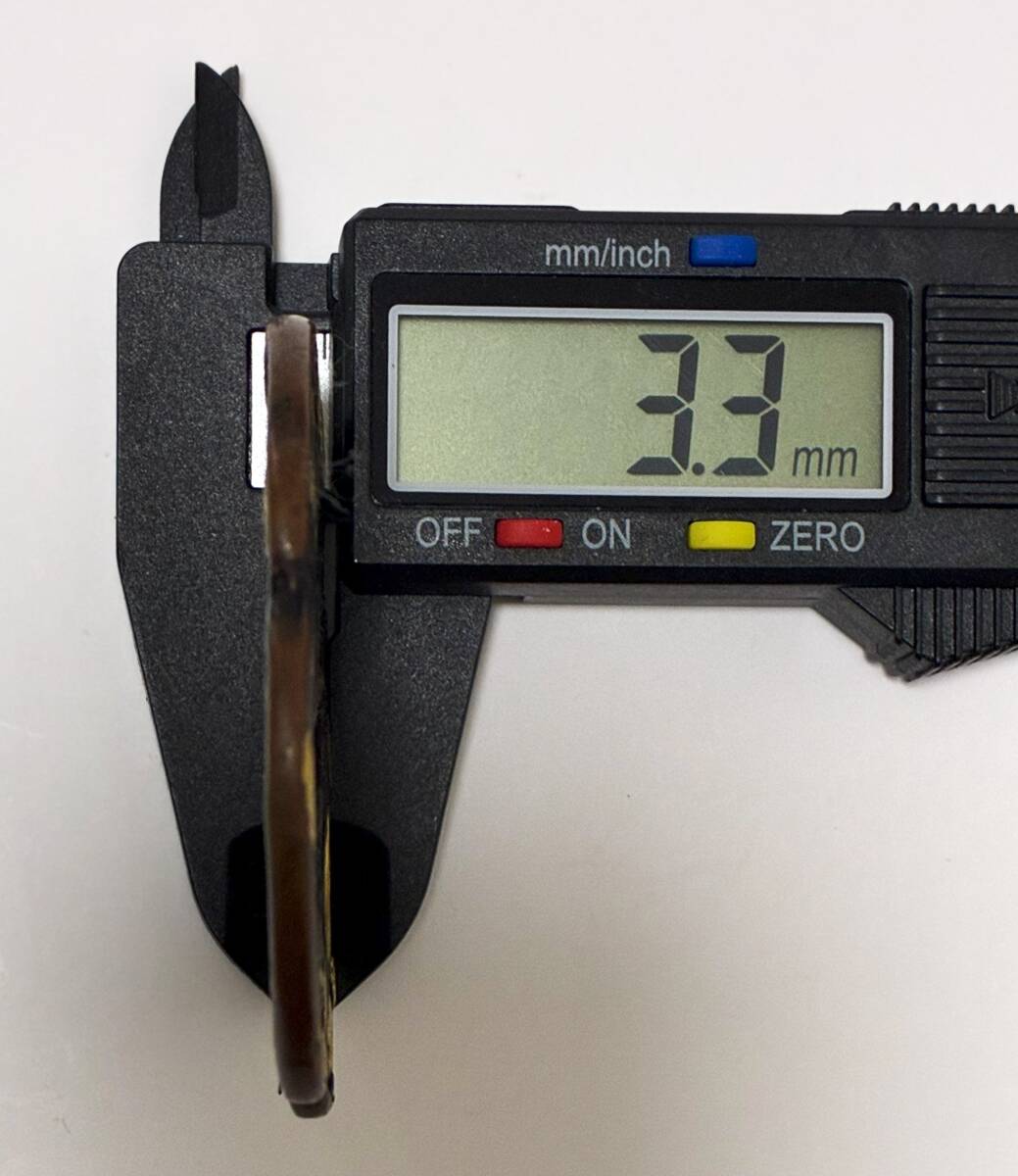 サイズ:縦:約58.7mm  横:約56.9mm  厚さ:約3.3mm。