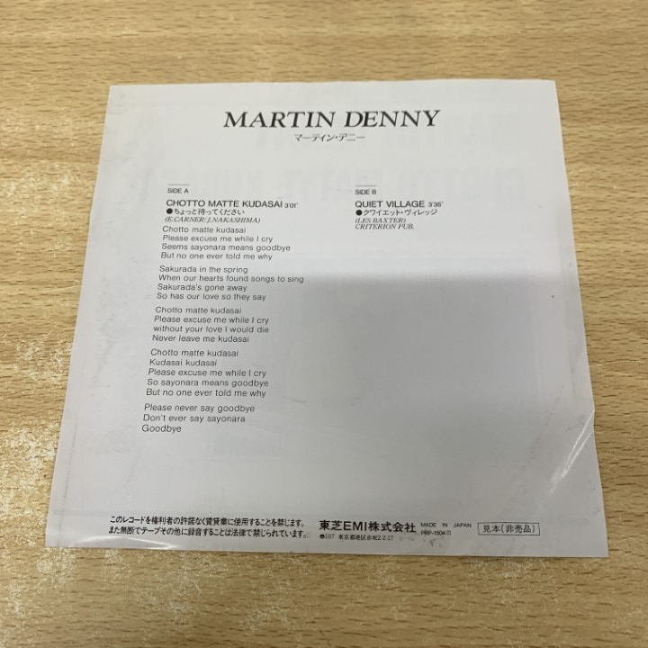 Product name: ●01)【1点限り!】【見本盤】Martin Denny/Exotica’90/マーティン・デニー/PRP-1504/EPレコード/7インチ/国内盤/白ラベル/ジャズ/JAZZ/A