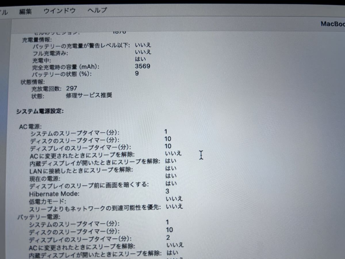 初期化前になりますが、Touch Barの右側を中心に白色の強い輝度で点滅するときがありました。点滅しないこともあります。Touch Bar右側の白色の強い輝度で点滅する部分でも使用はできました。Touch BarのF3〜F12の明かりにムラがあります。Trackpadについてですが、反応はしますが、指で押した時に若干硬いです。その他の動作は問題ありません。Touch BarとTrackpadについては、修理等が必要になります。