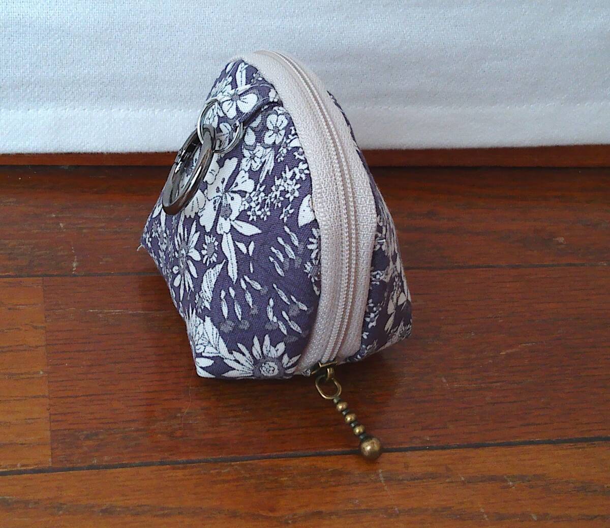 リングタブに丸いカラビナを付けた小さなポーチです。