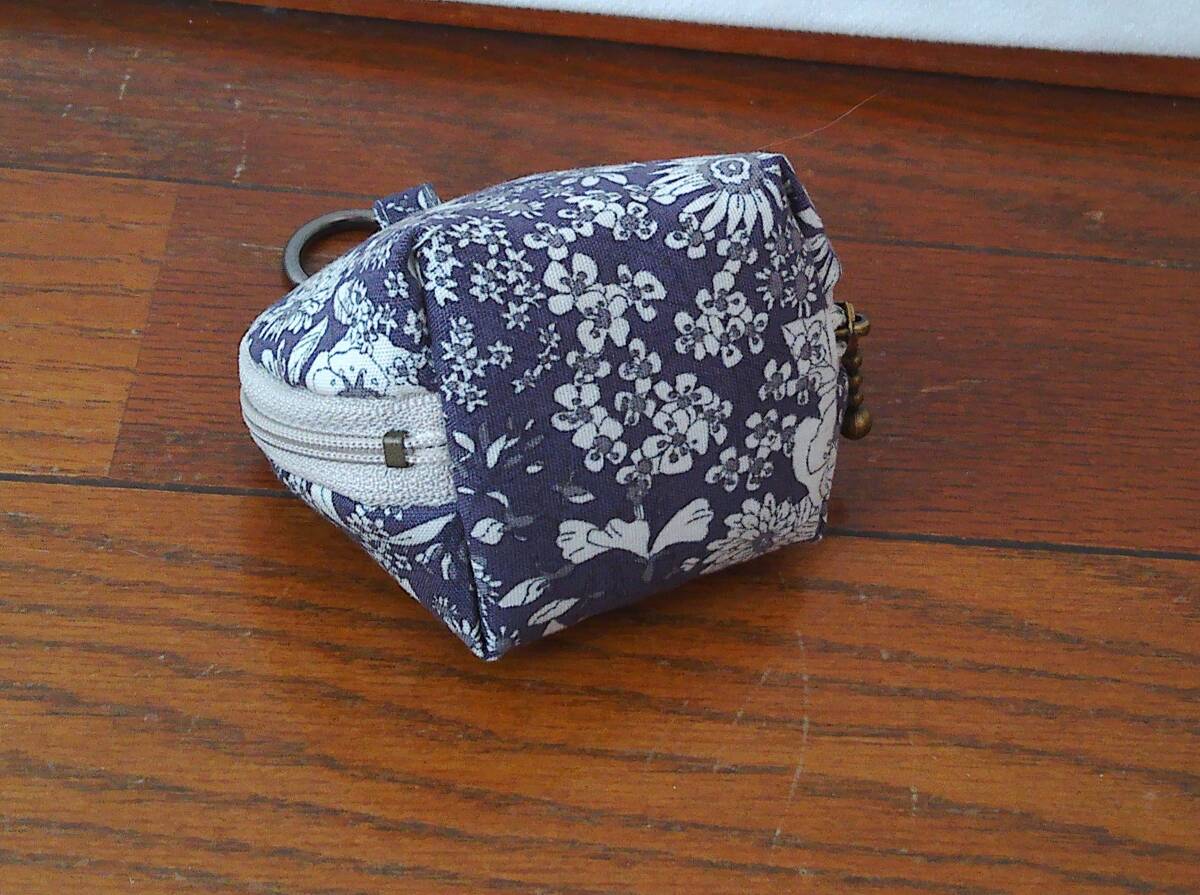 Product name: ★カラビナ付きミニポーチ★紺系グレー白花葉っぱ