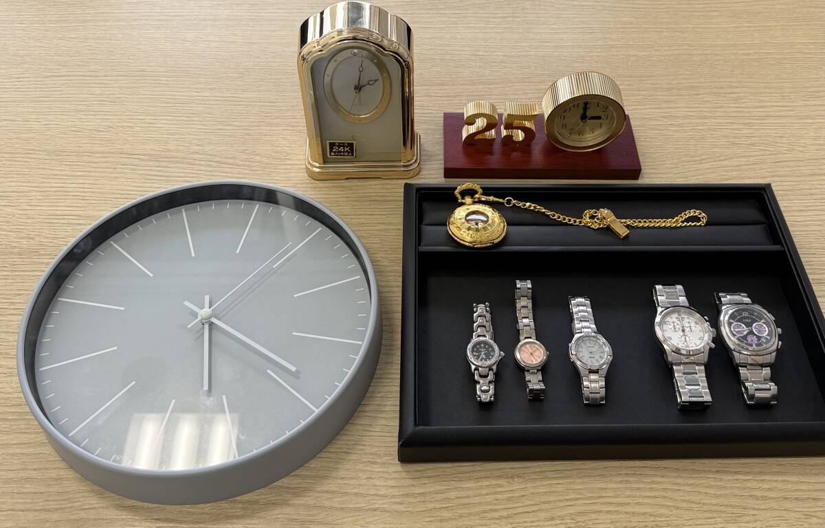 時計おまとめ9点です。腕時計5点 懐中時計1点 掛け時計1点 置時計2点あります。