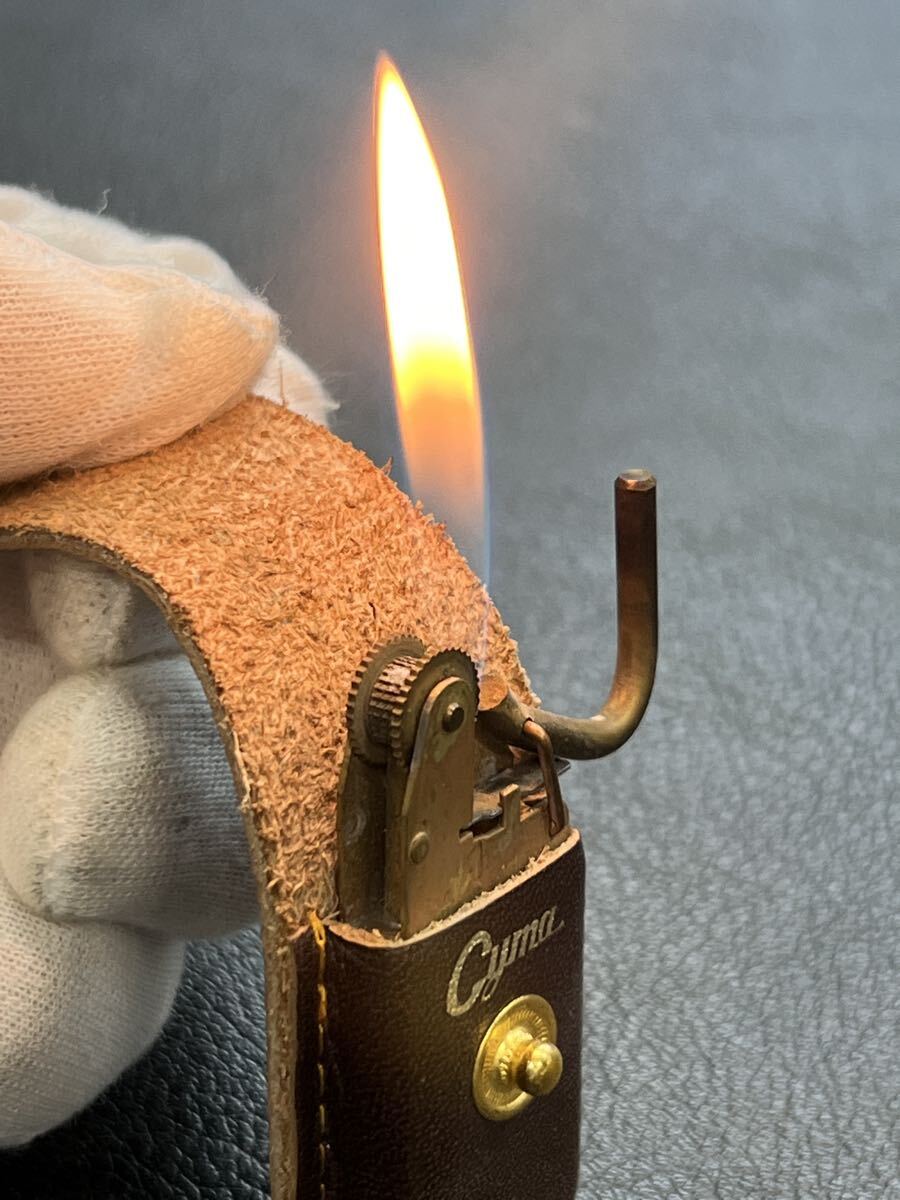 CYMA シーマ ガスライター 革ケース付き ゴールドカラー ヴィンテージ