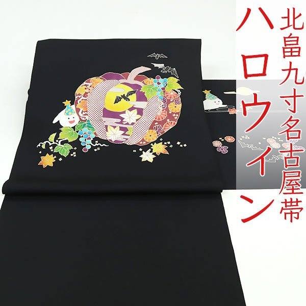 Product name: 和遊館 ONK2634 北畠 五泉 塩瀬 九寸 名古屋帯 ハロウィン 黒色