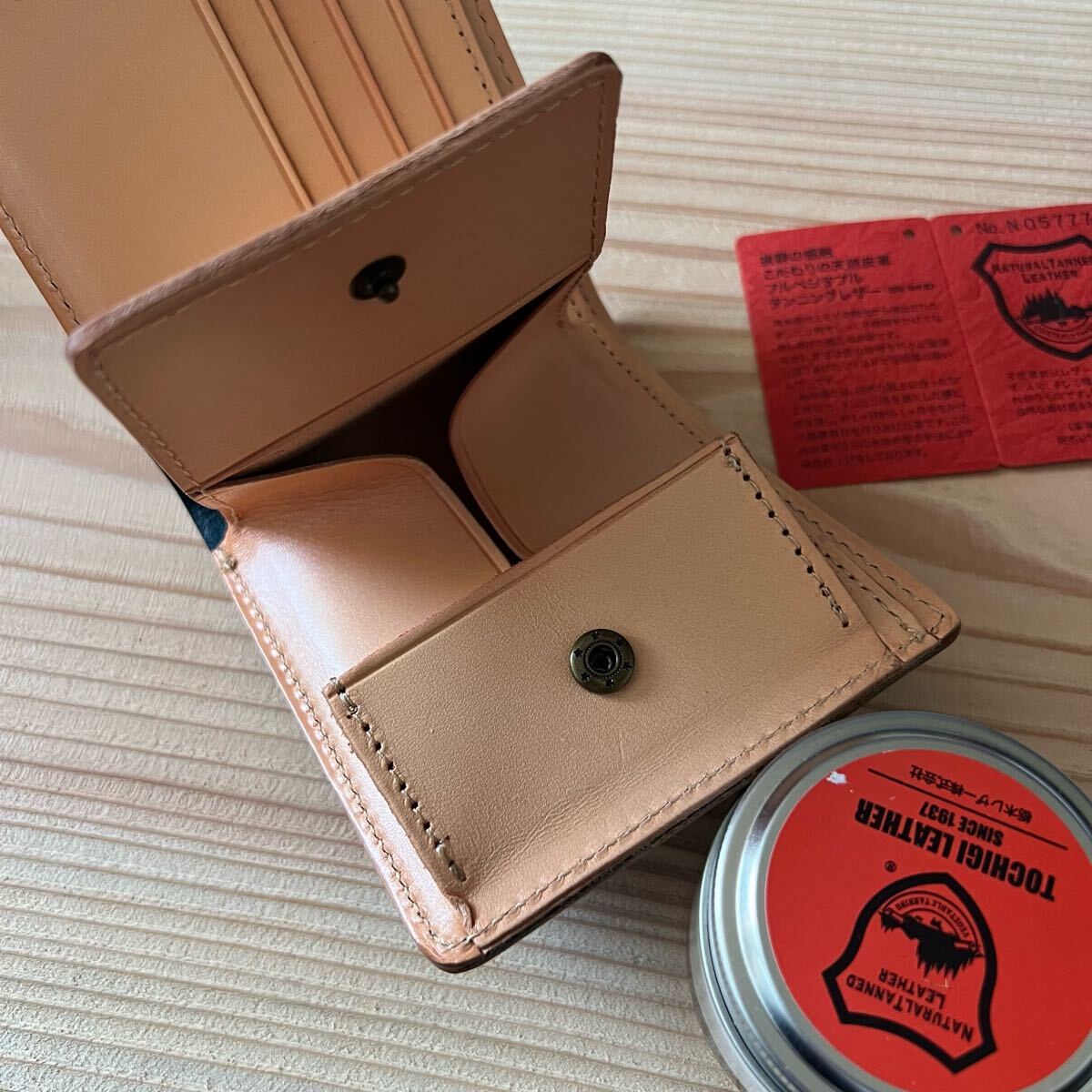 新品未使用 黒 ブラック 栃木レザー フルレザー 二つ折り財布 本革 ブライドルレザー 牛革 コンパクト ミニ財布