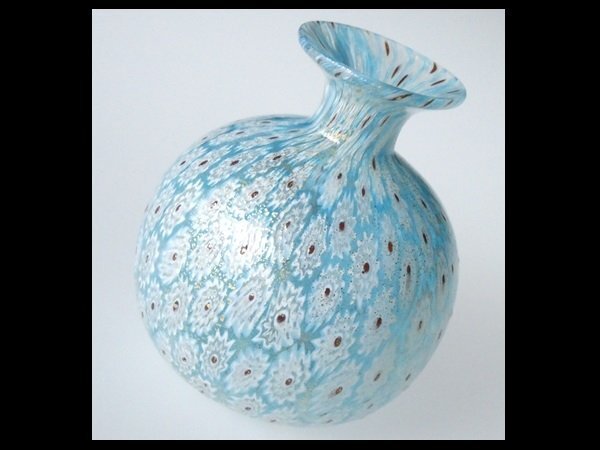 ムラノ ベネチアングラス 金彩 ブルー ミルフィオリ ミニベース 花瓶 飾壷 n616
