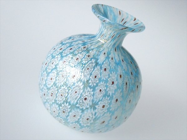 Product name: ムラノ ベネチアングラス 金彩 ブルー ミルフィオリ ミニベース 花瓶 飾壷 n616