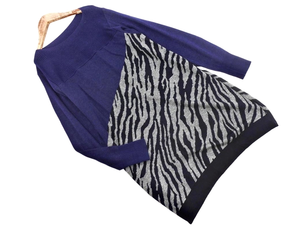 Product name: EVEX by KRIZIA エヴェックスバイクリツィア ニット ゼブラ柄 チュニック ワンピース size40/紺xグレー ◇■ ☆ fjc1 レディース