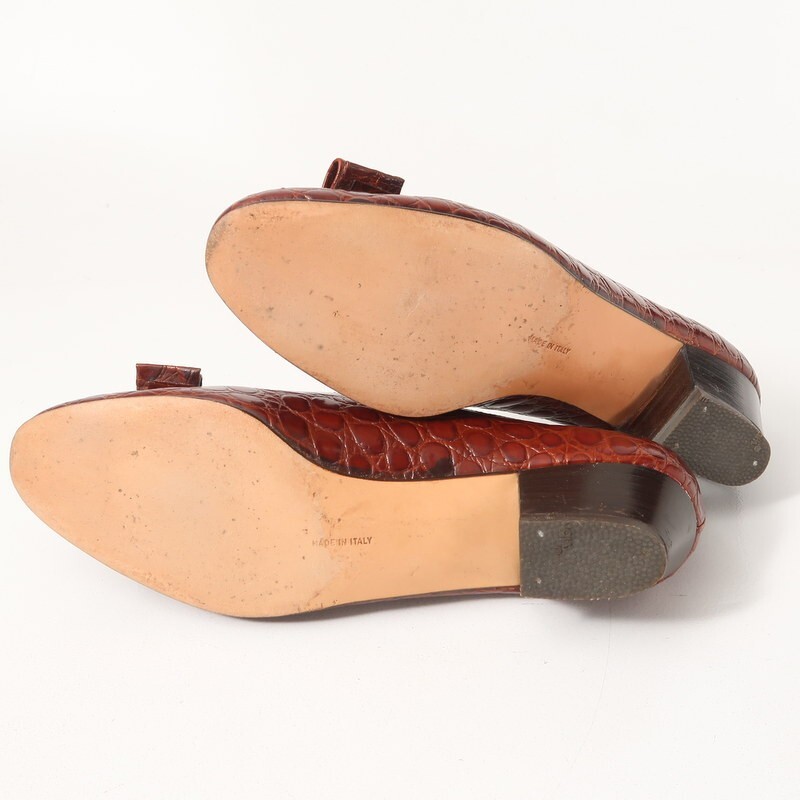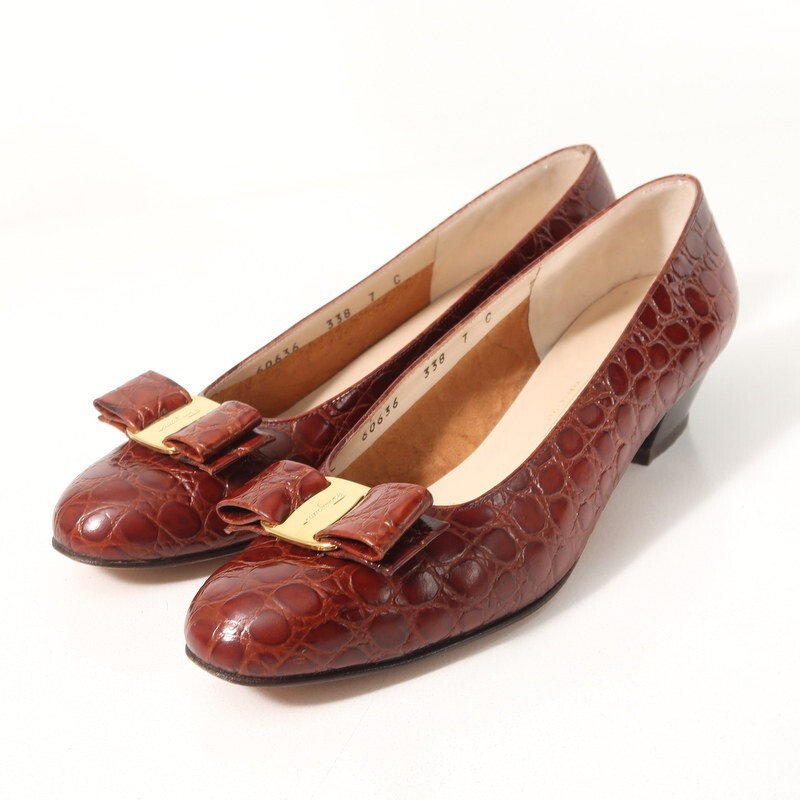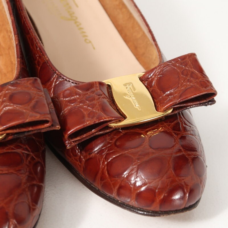 Product name: GS4159*イタリア製 サルヴァトーレフェラガモ 7C(24cm相当) VARA ヴァラリボン クロコ型押しレザー パンプス 靴 ブラウン