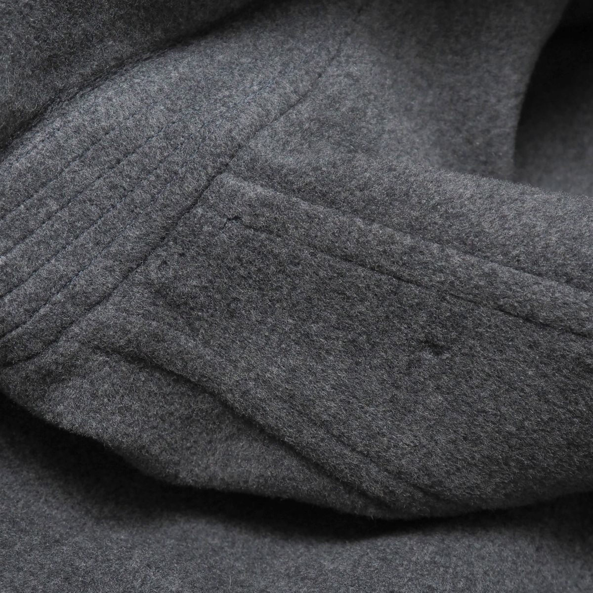 柔らかく滑らかなタッチのメルトン地を使用し、エンブレム刻印入りの金ボタンをあしらったショート丈のダブルブレステッドコート。