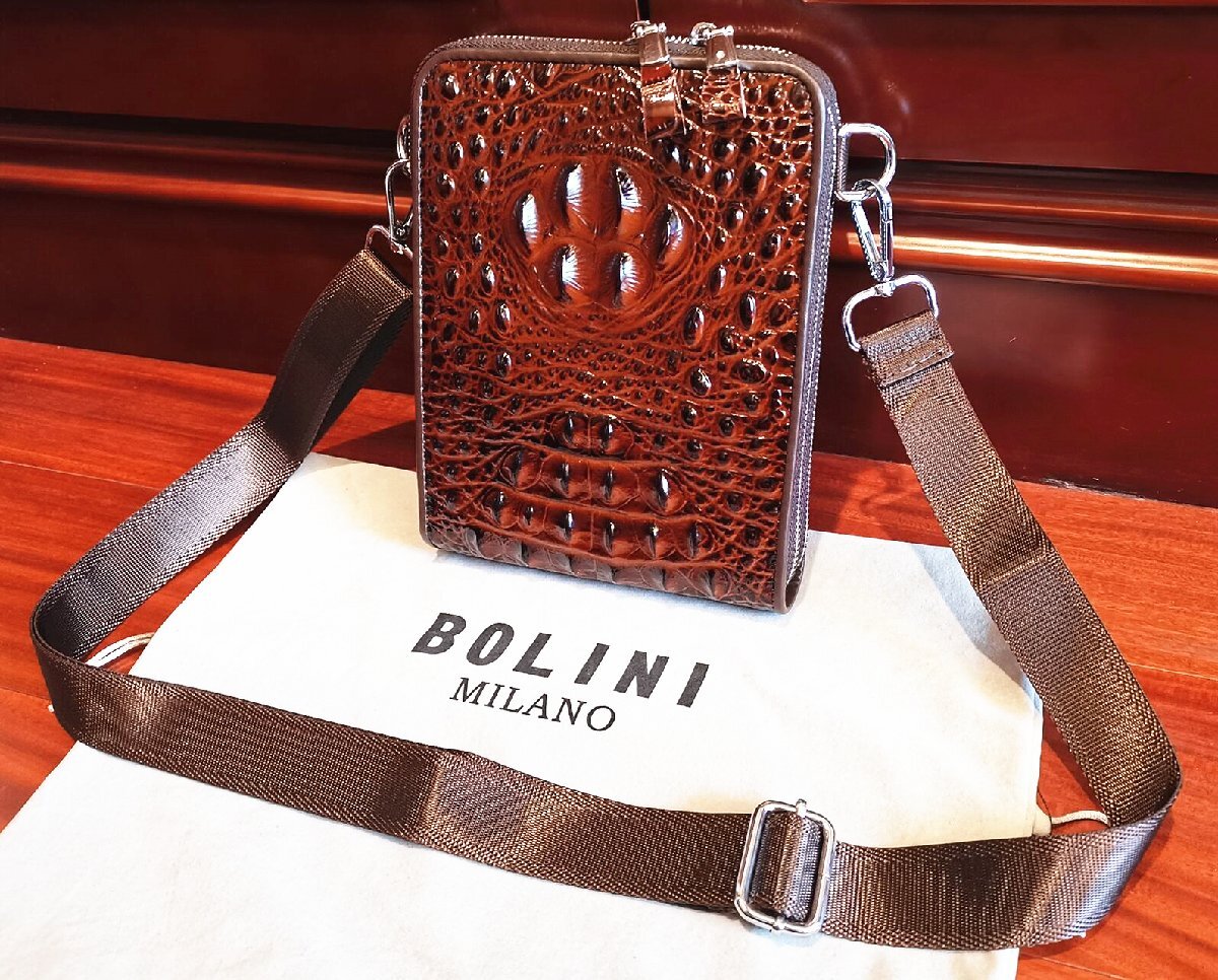 最上逸品*16万◆イタリア・ミラノ発*BOLINI/ボリニ・最上級牛革・クロコダイル*ショルダーバッグ/リュックサック・茶色