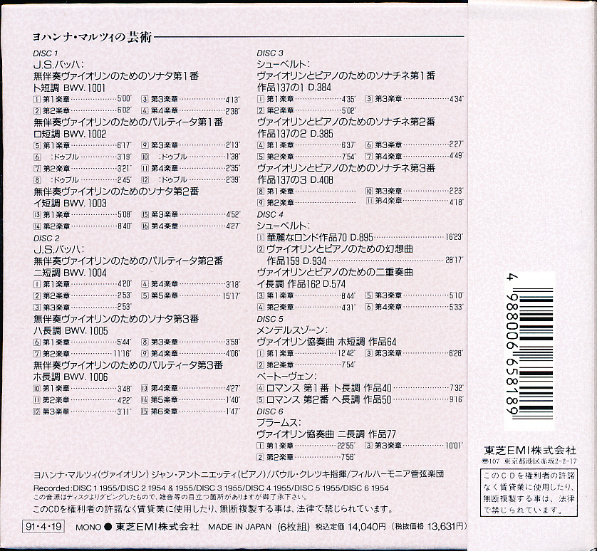 Product name: 初期盤 TOCE-6861-66 ヨハンナ・マルツィの芸術 6CD