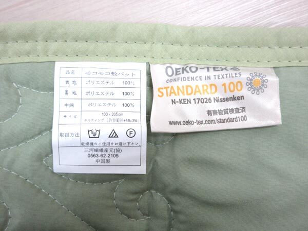 エコテックス ふんわりあったか敷パッド シングル グリーン(柊)