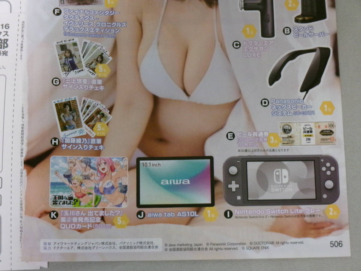 ヤングガンガン 21号 アンケート応募はがき 葉書 ハガキ 2枚セット 在個数2 三上悠亜 QUO クオカード サイン入りチェキ 加藤綾乃 他