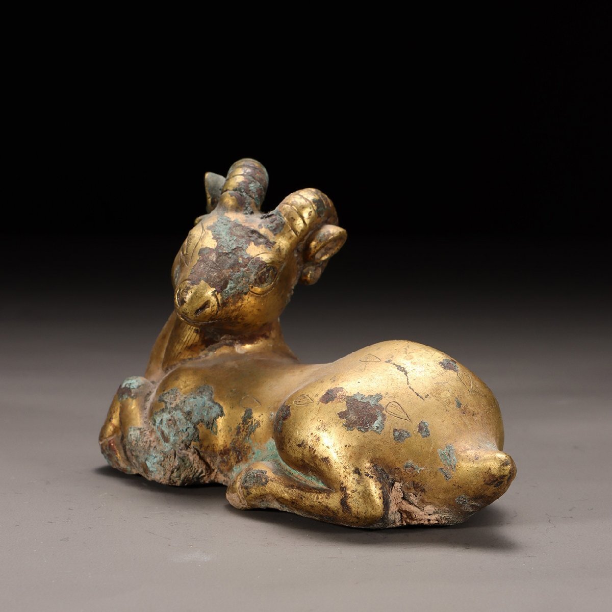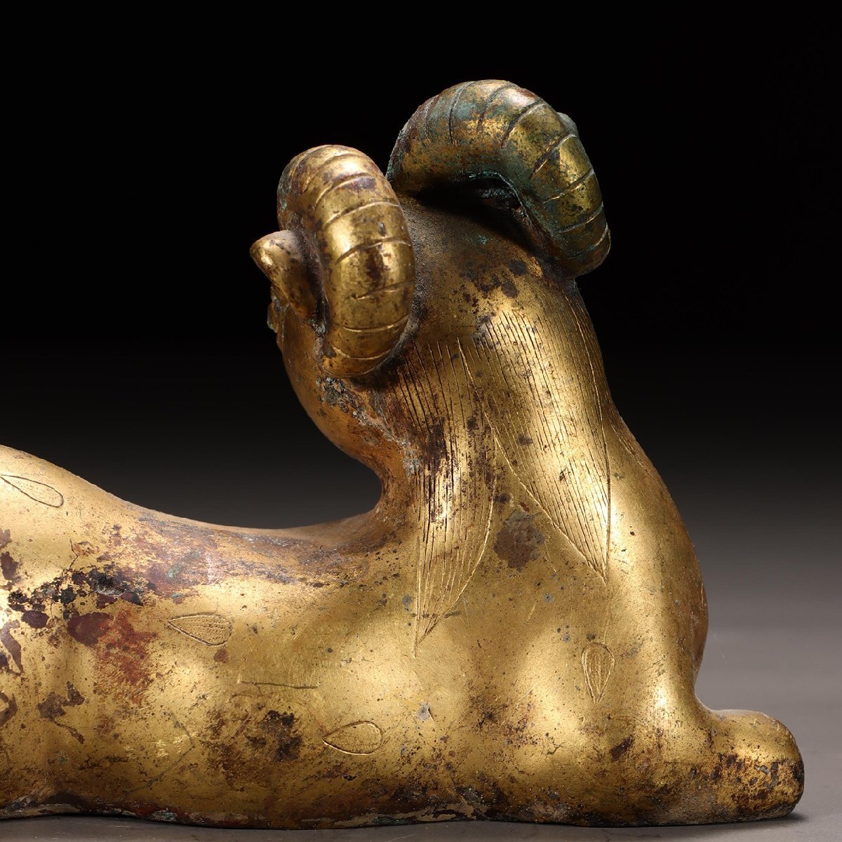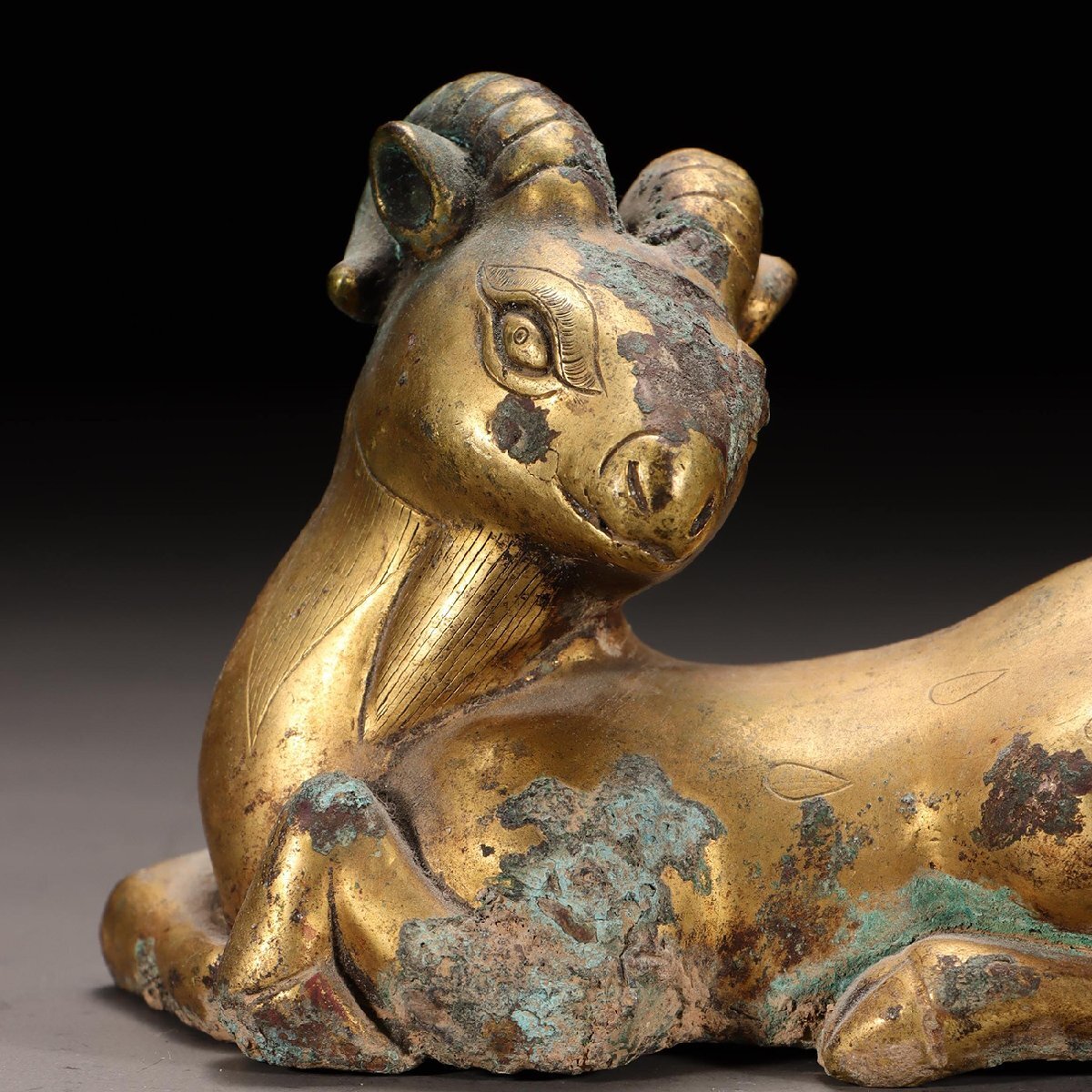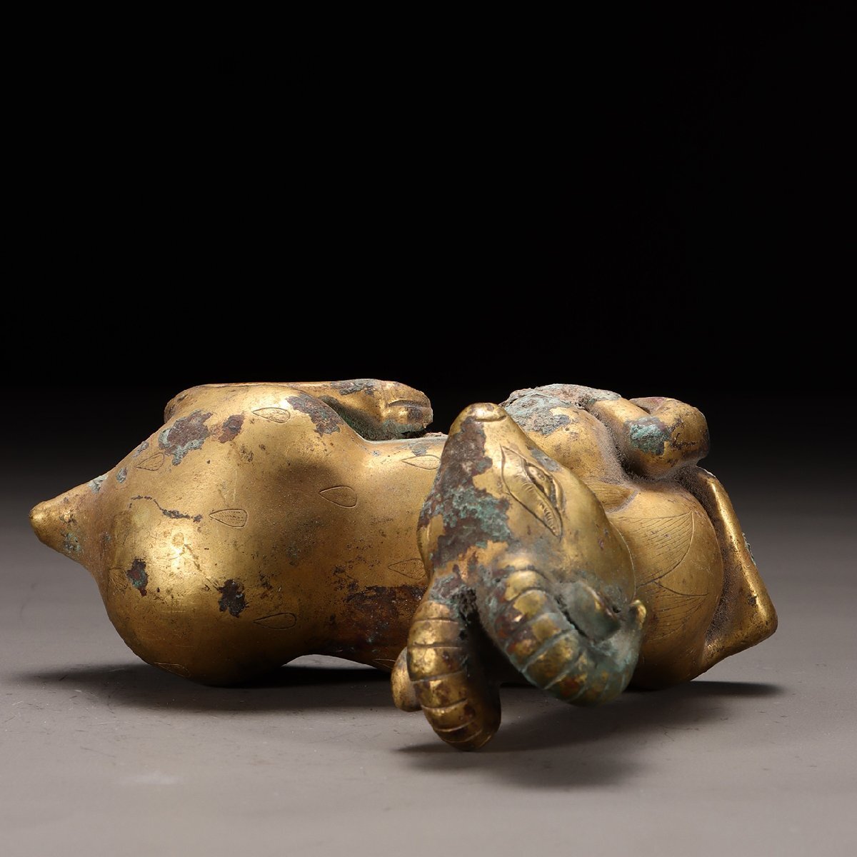Product name: 【安】唐時代 銅胎施金 臥羊鎮紙 極細工 古置物 古擺件 中国古美術 古美味 時代物 古董品 296