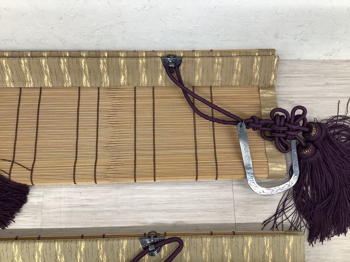 ●代GVM019-160 御座敷すだれ 座敷簾 御簾 吊金具 和室 床間掛け 茶室 レトロ 2点セット 木箱付き ① /h