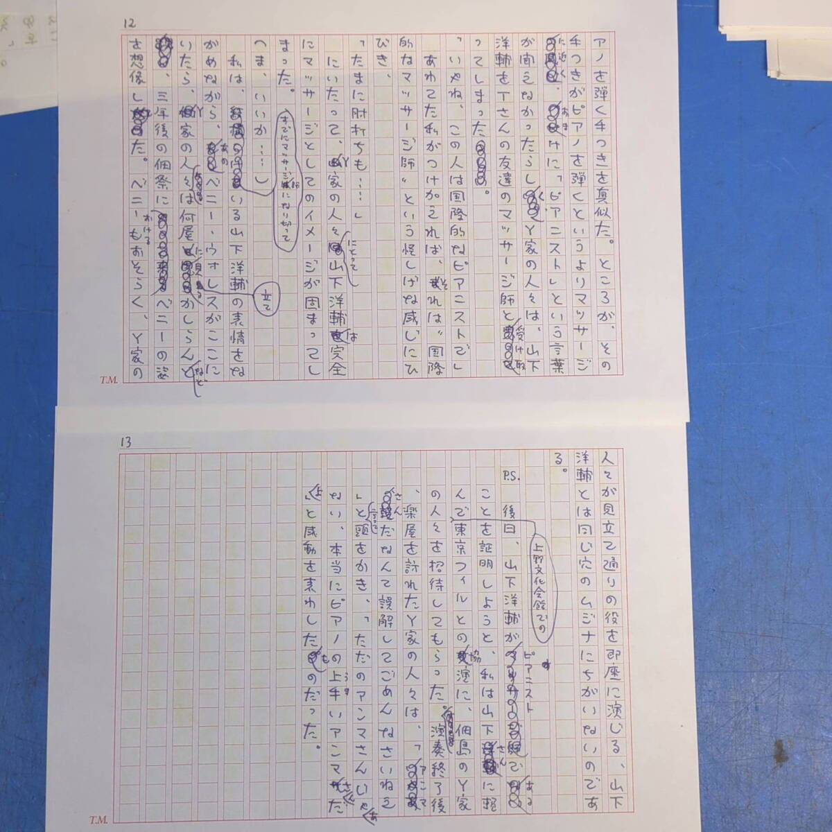 400字詰の「T.M.」名入原稿用紙13枚 20.5cm×28cm