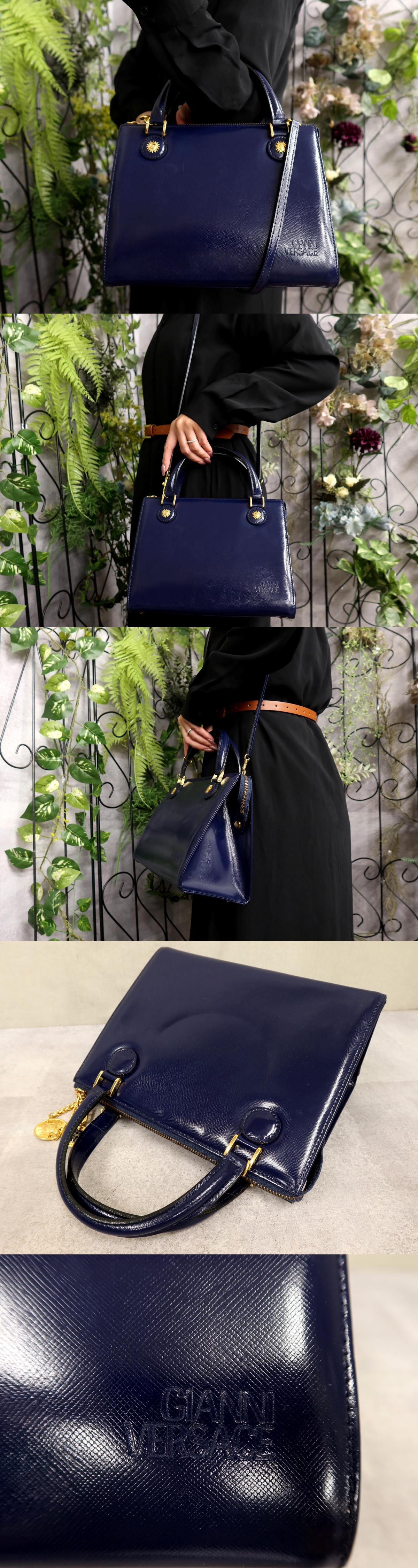 Product name: ●超美品●GIANNI VERSACE ジャンニ・ヴェルサーチ●サンバースト●太陽神●カーフ レザー 本革●2way ハンド バッグ●ネイビー●Js61522